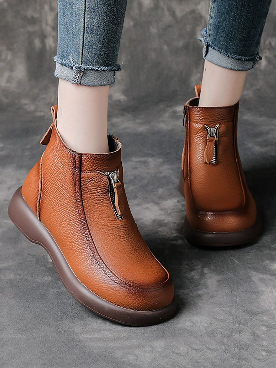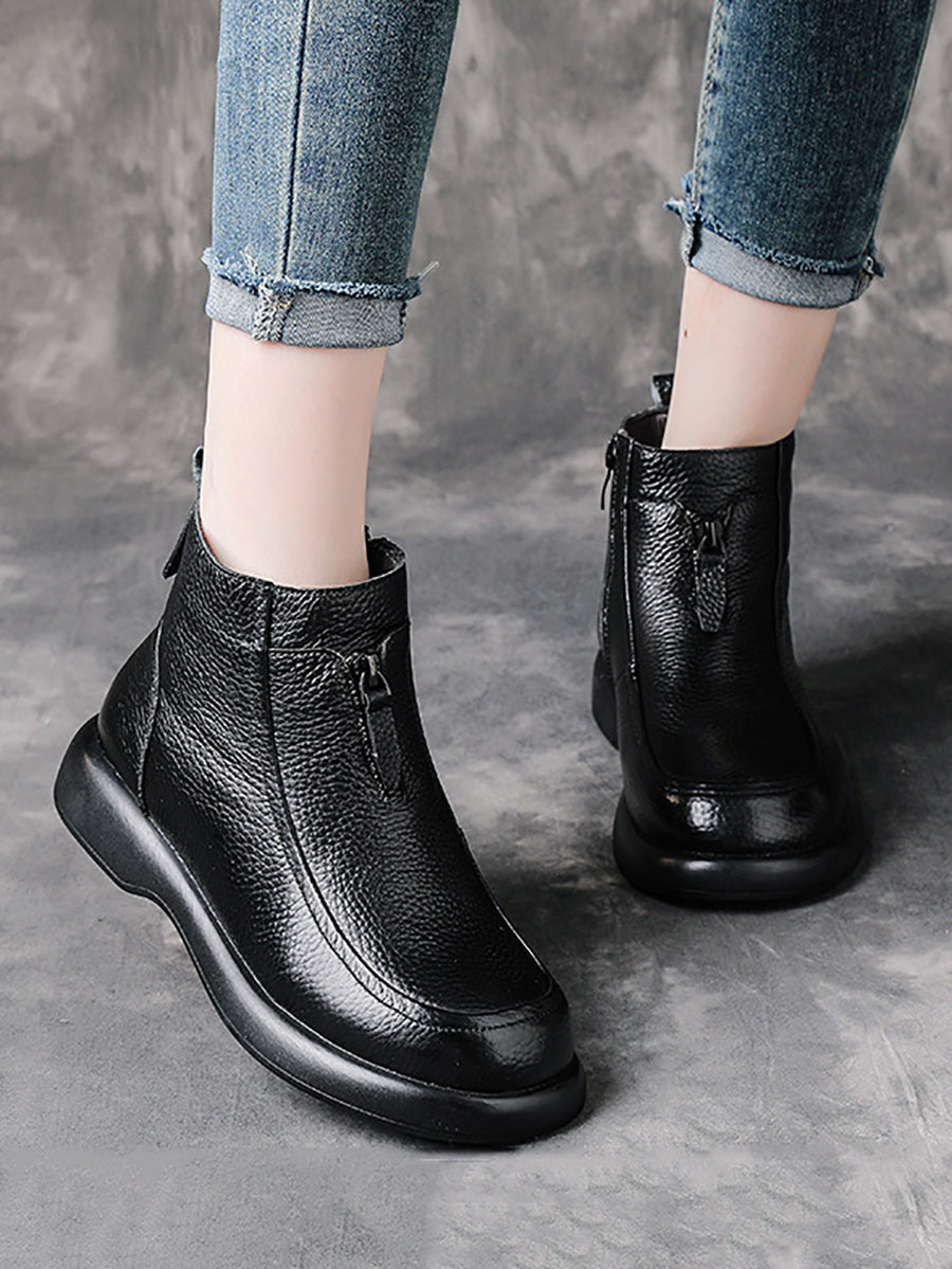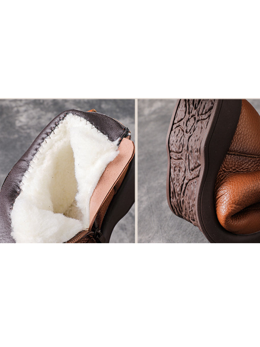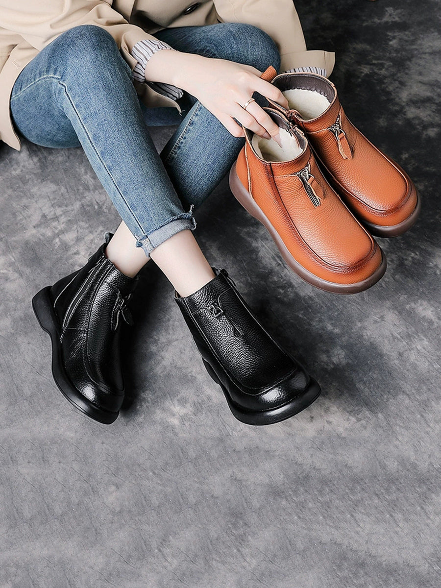 Women Winter Genuine Leather Fleece-lined Ankle Boots