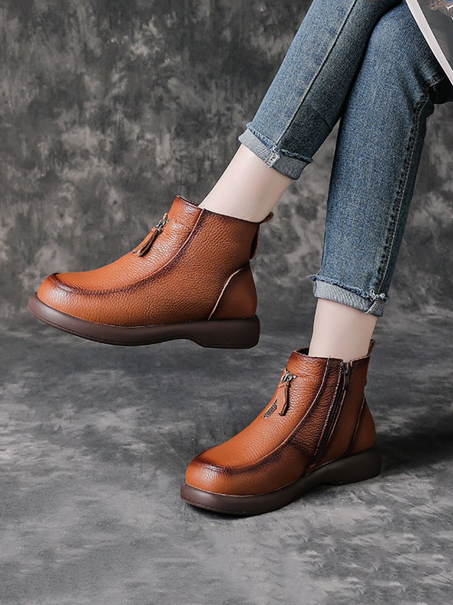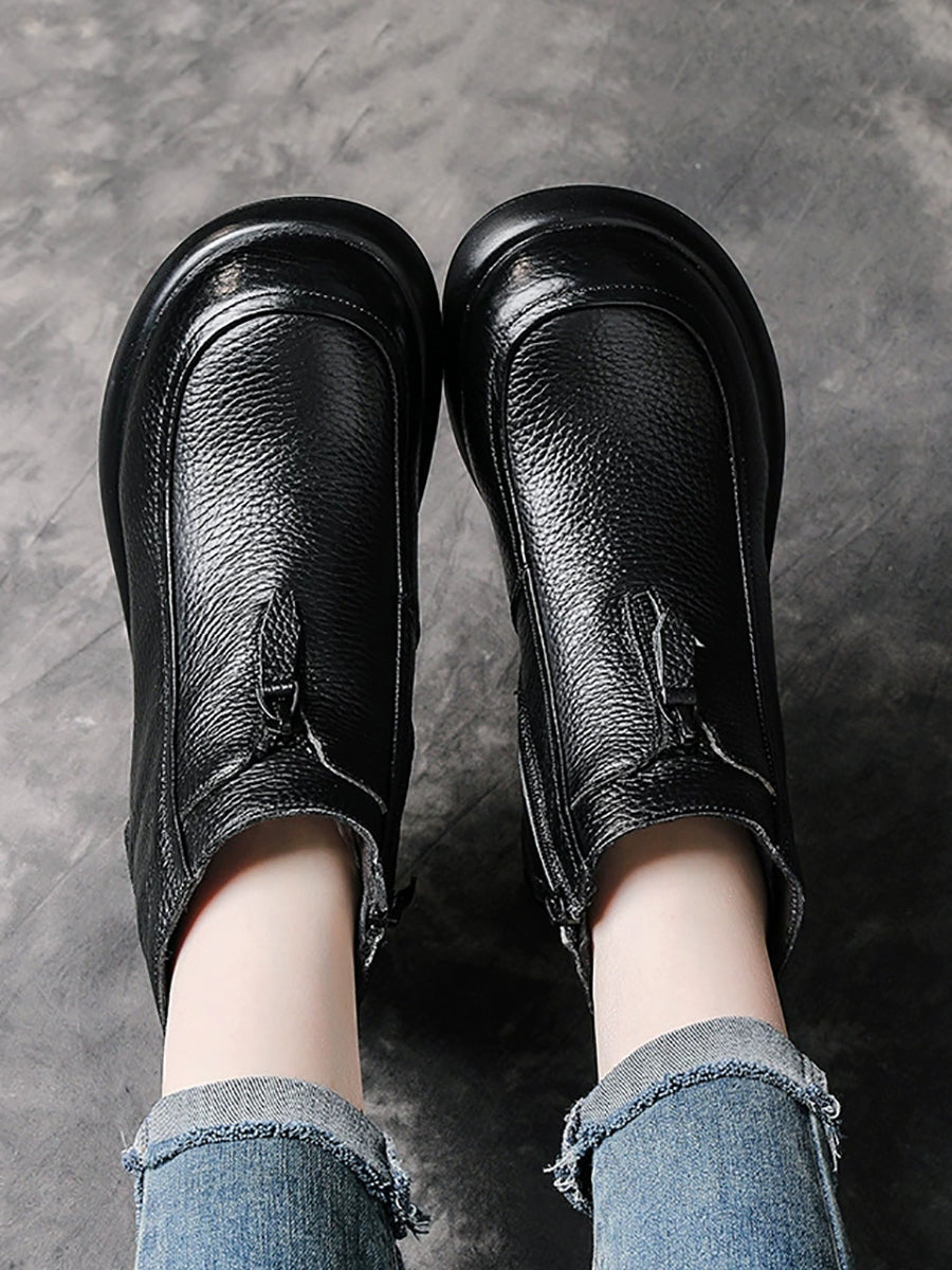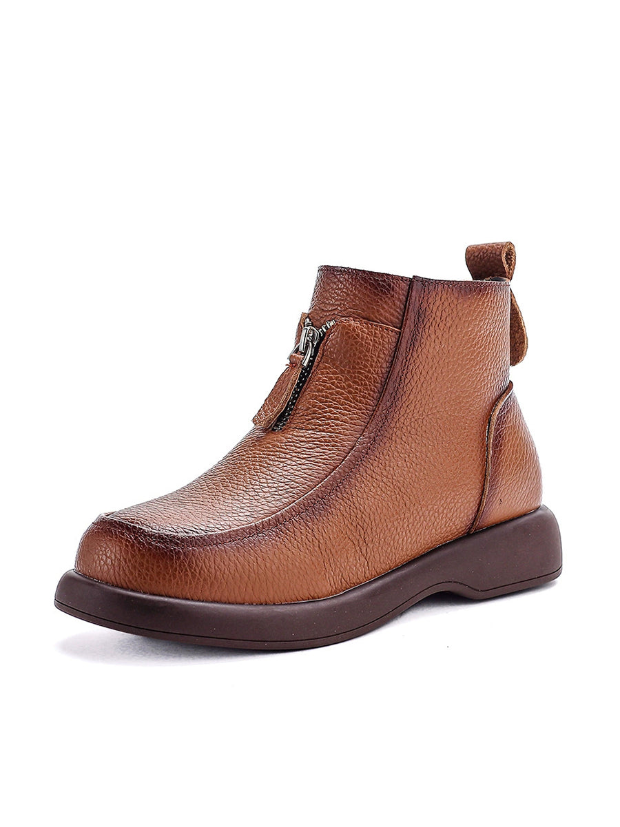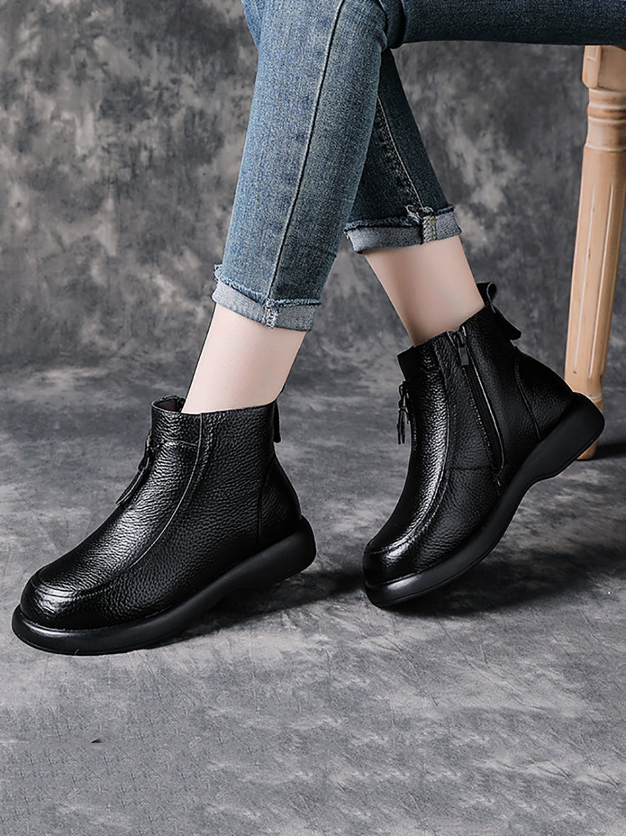 Women Winter Genuine Leather Fleece-lined Ankle Boots
