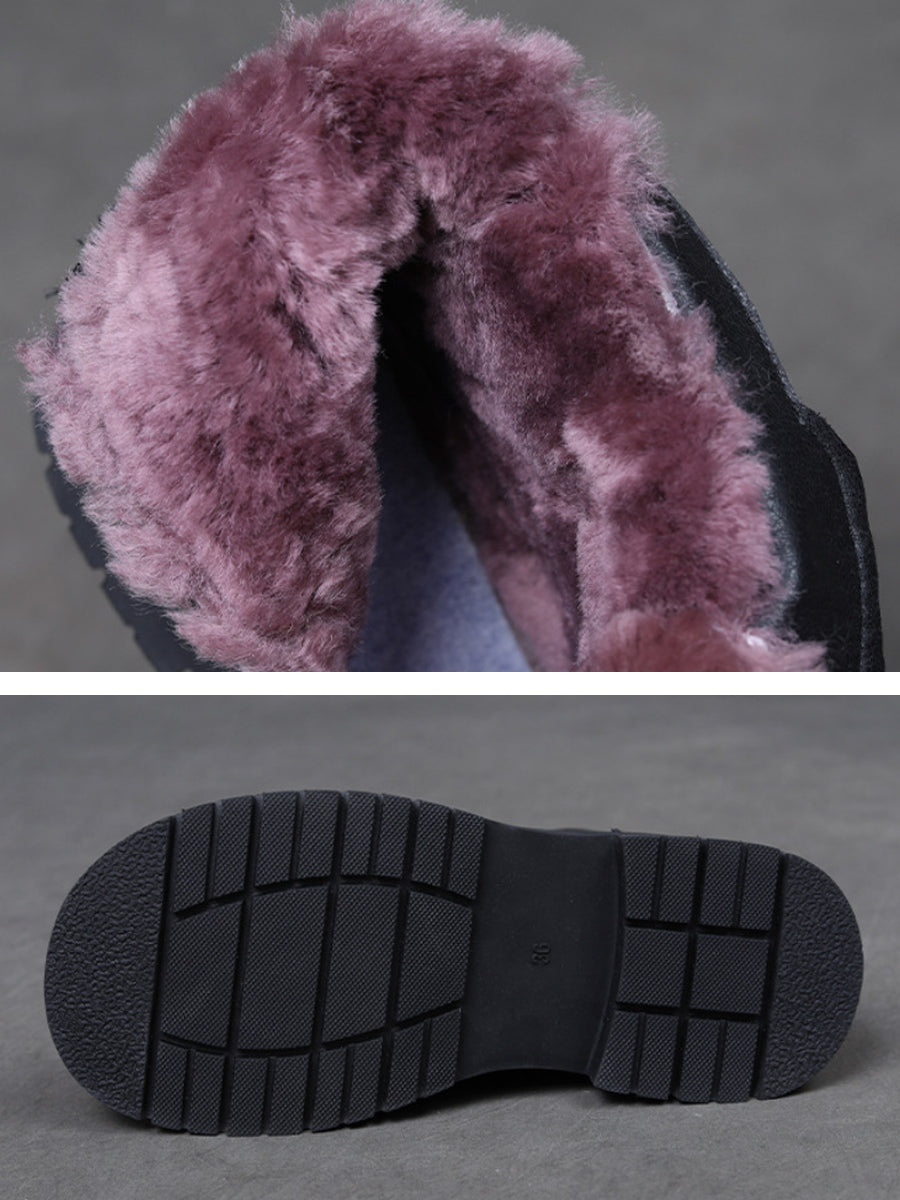 Women Winter Genuine Leather Fleece-lined Ankle Boots