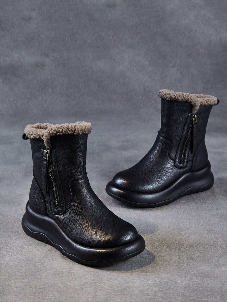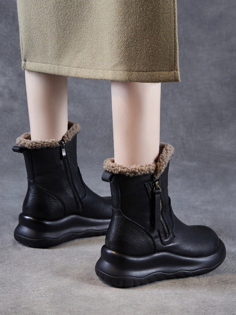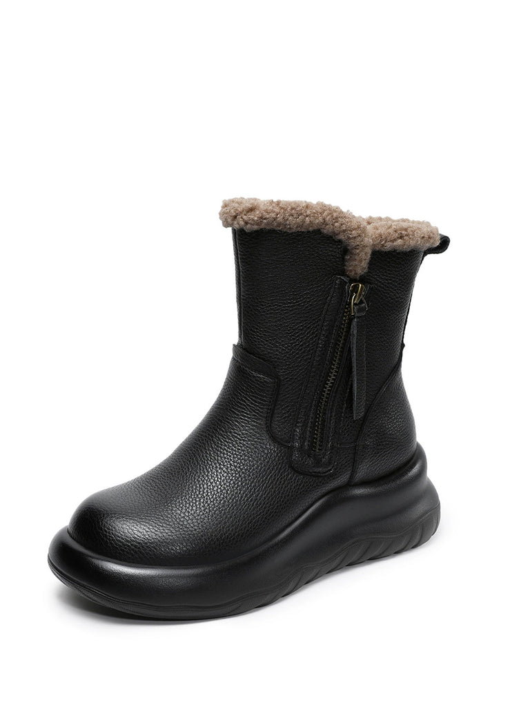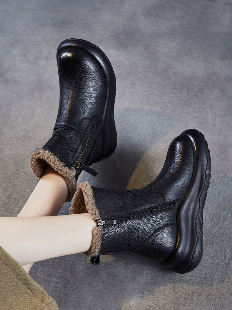 Women Winter Genuine Leather Fleece-lined Boots