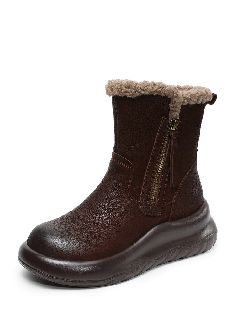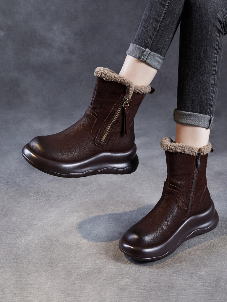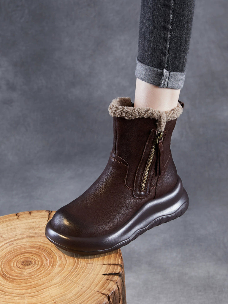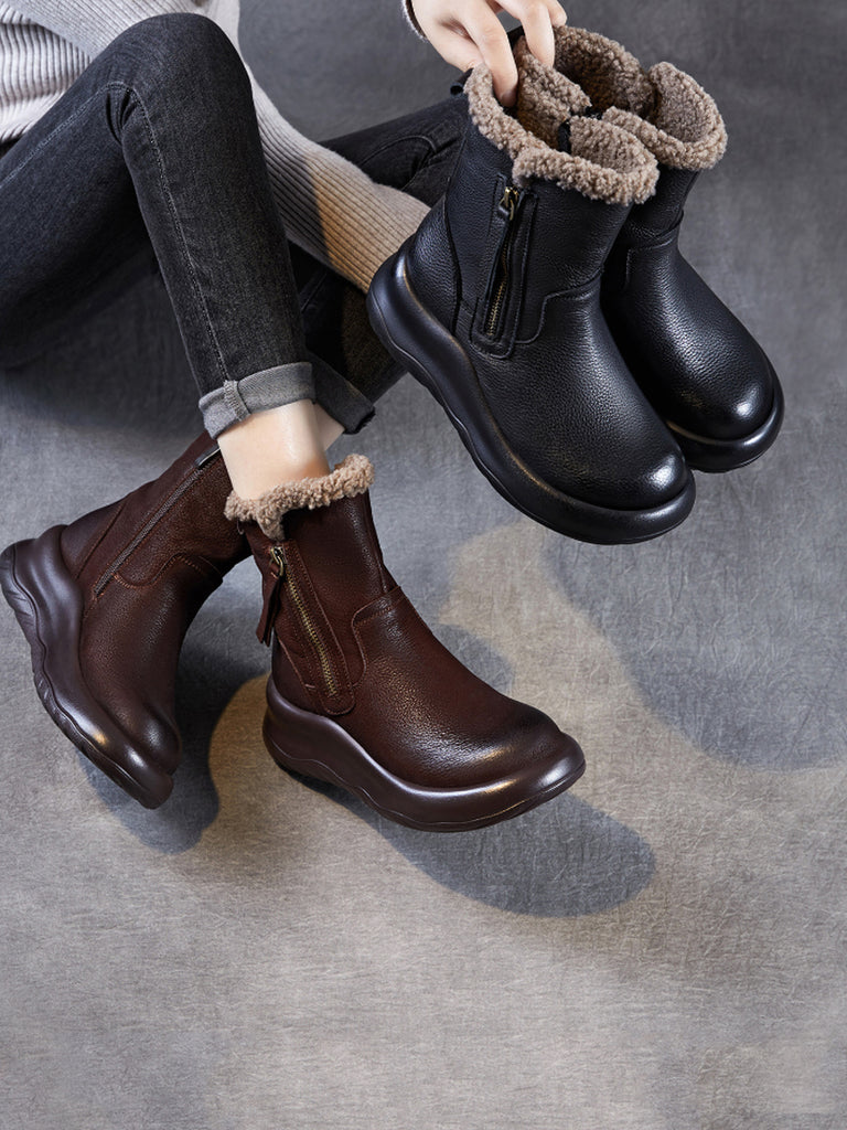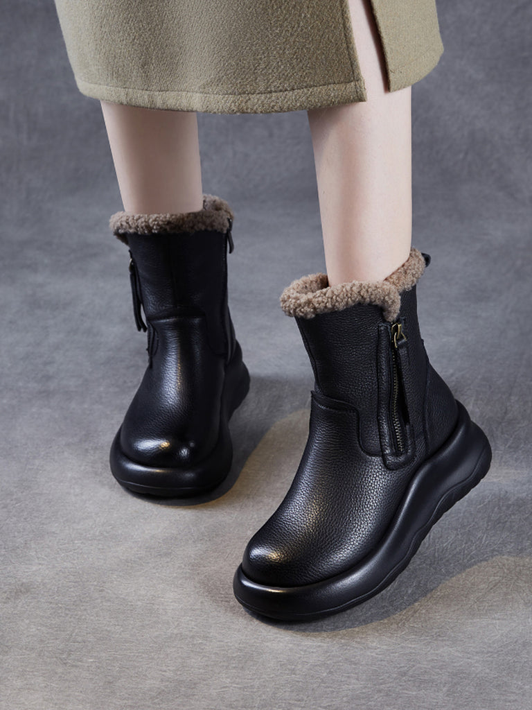 Women Winter Genuine Leather Fleece-lined Boots