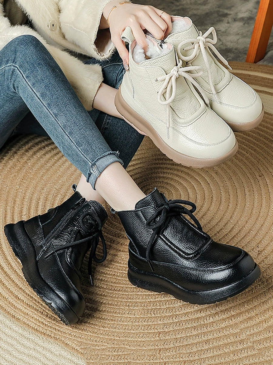 Women Winter Genuine Leather Fleece-lined Boots