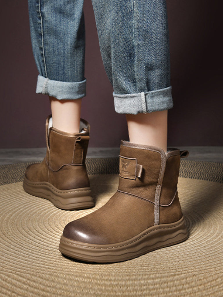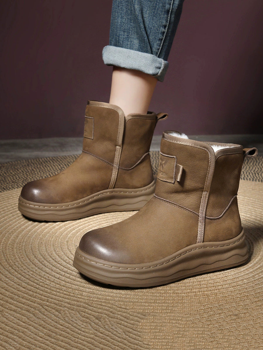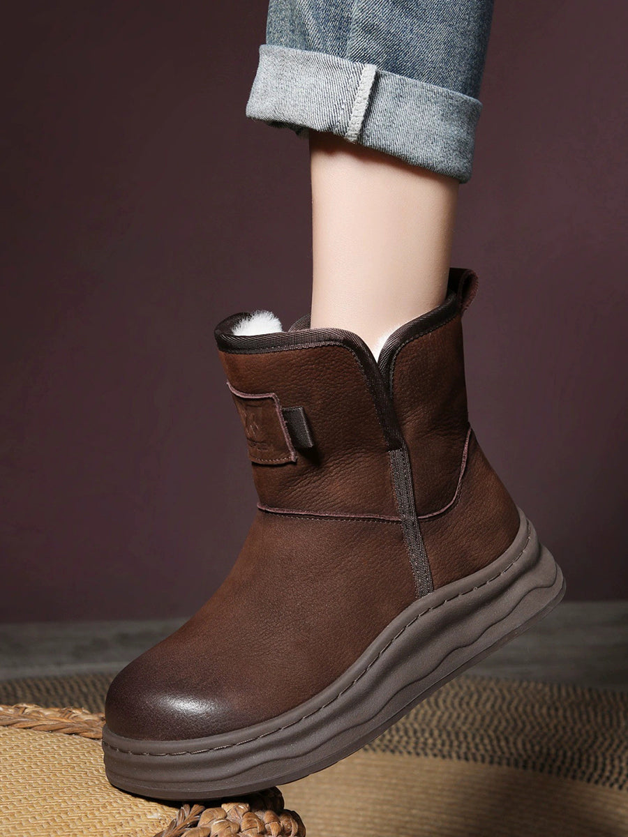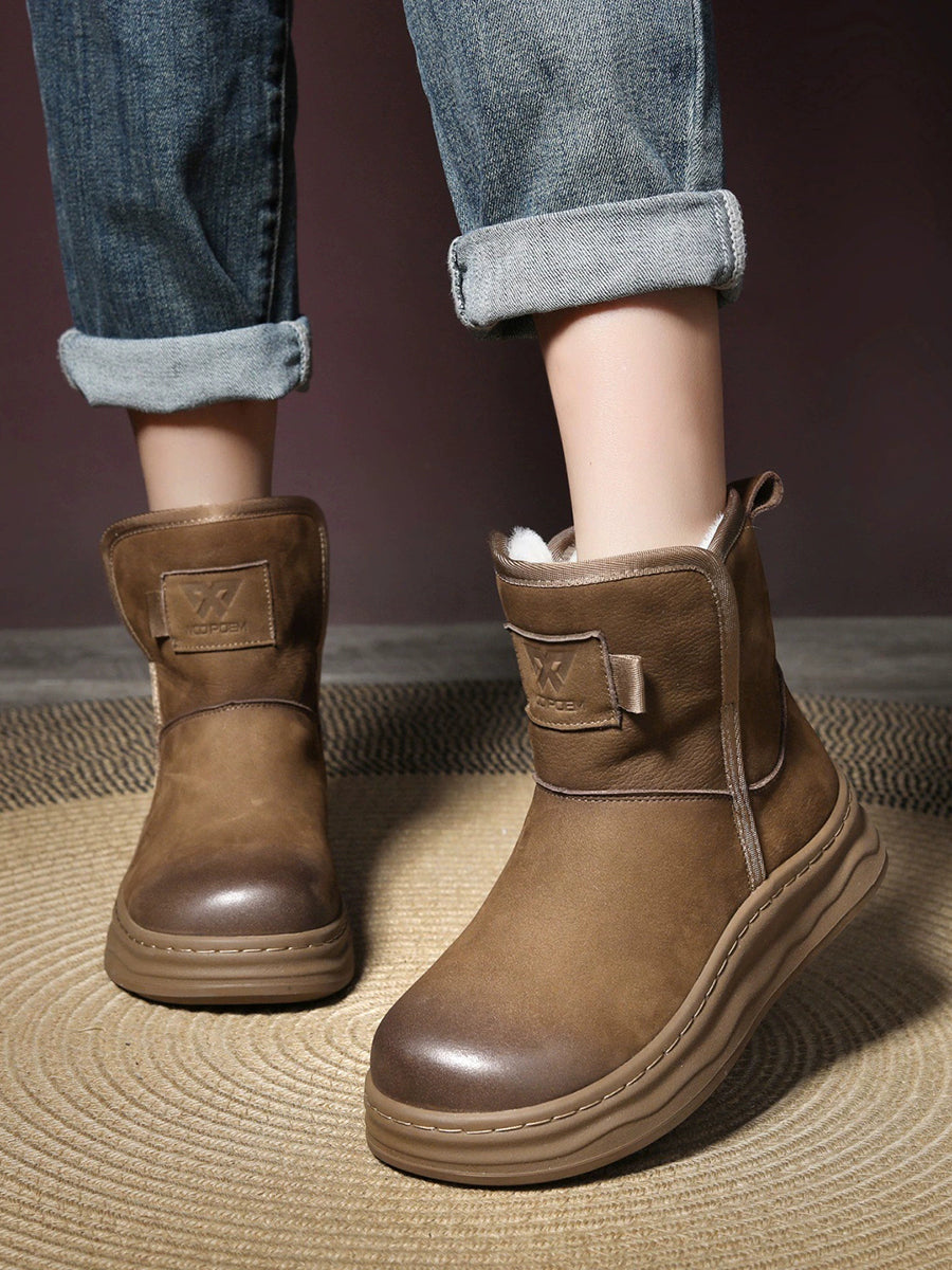Women Winter Genuine Leather Fleece-lined Boots
