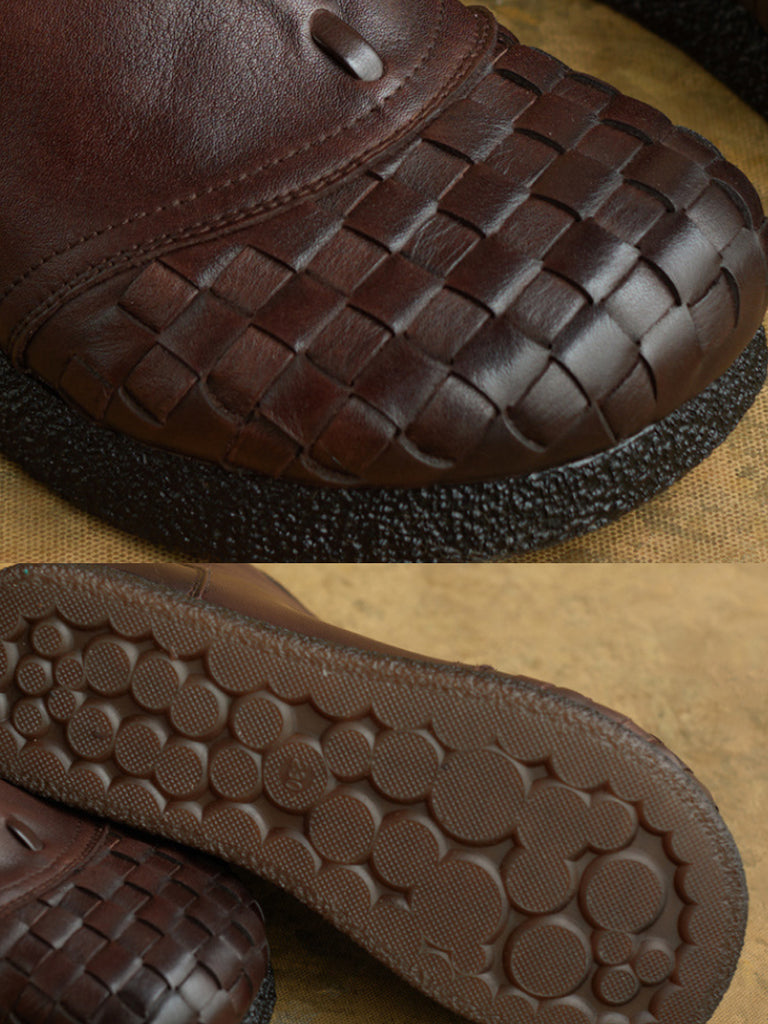Women Winter Genuine Leather Spliced Flat Ankle Boots