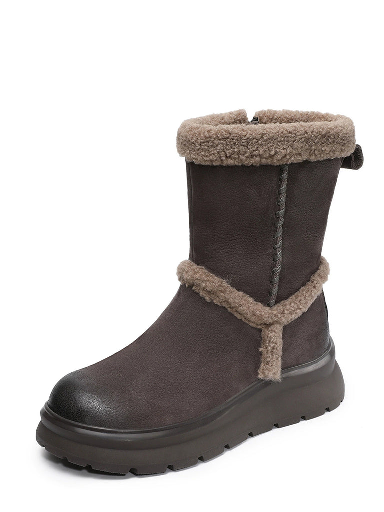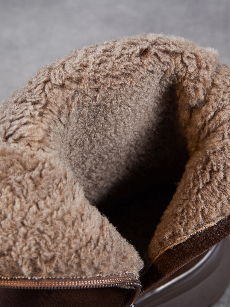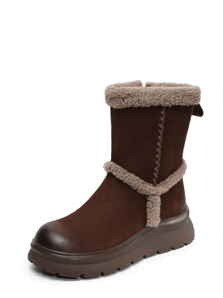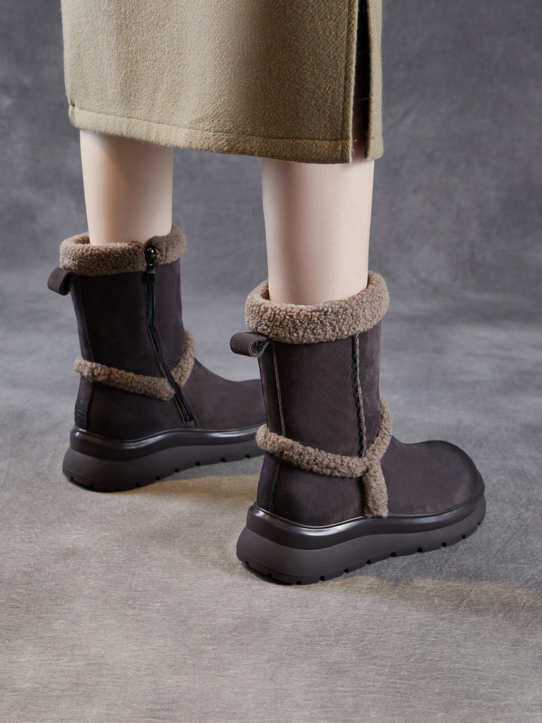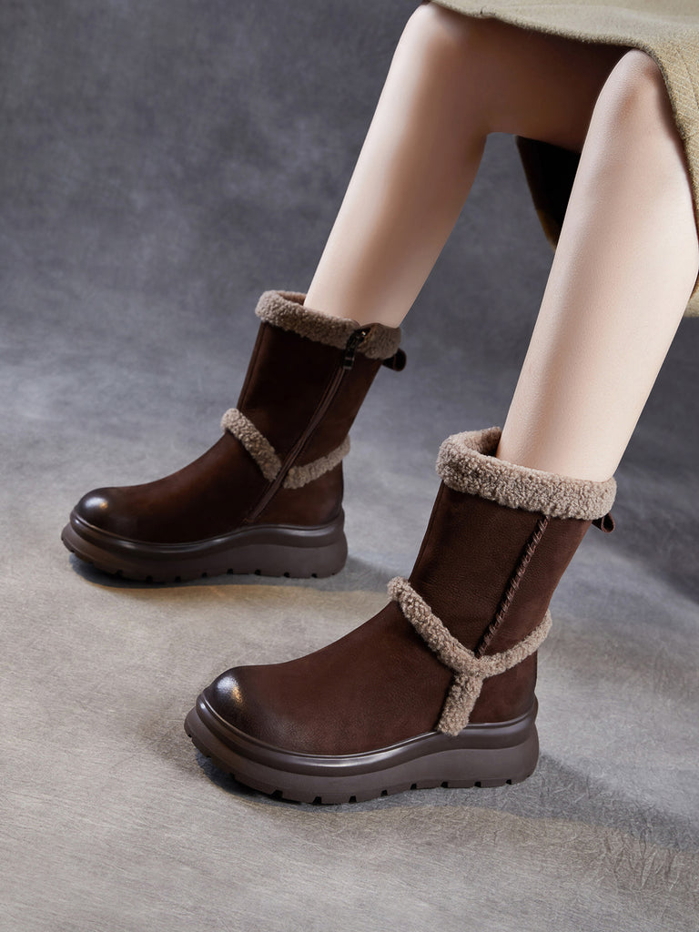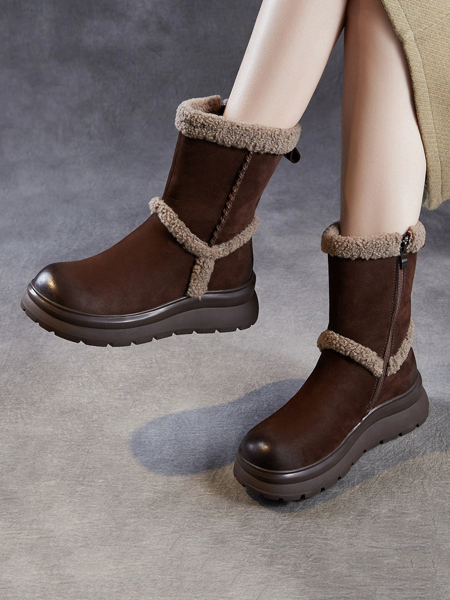Women Winter Genuine Leather Spliced Fleece-lined Boots