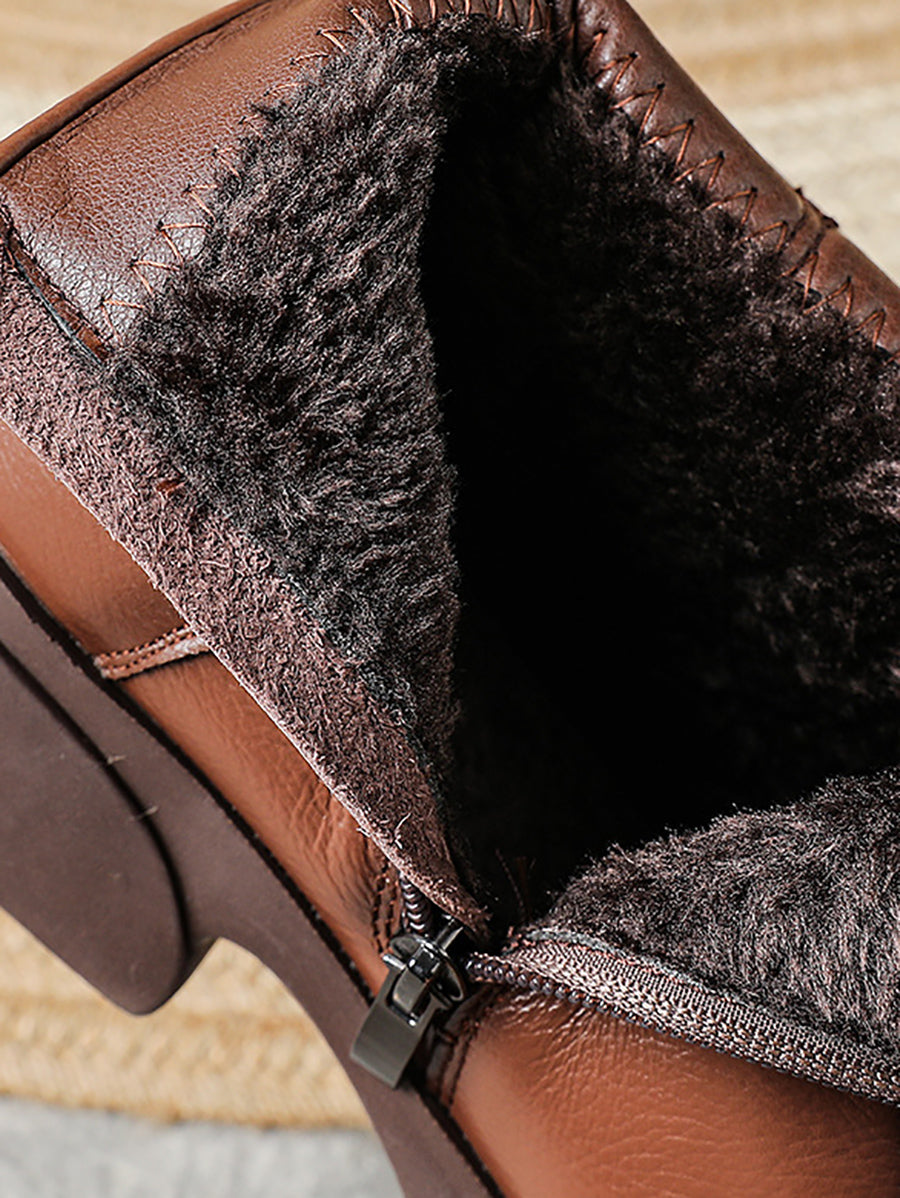 Women Winter Genuine Leather Spliced Platform Boots