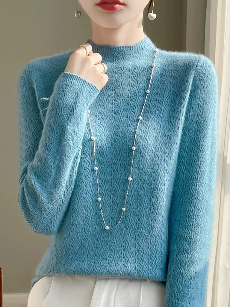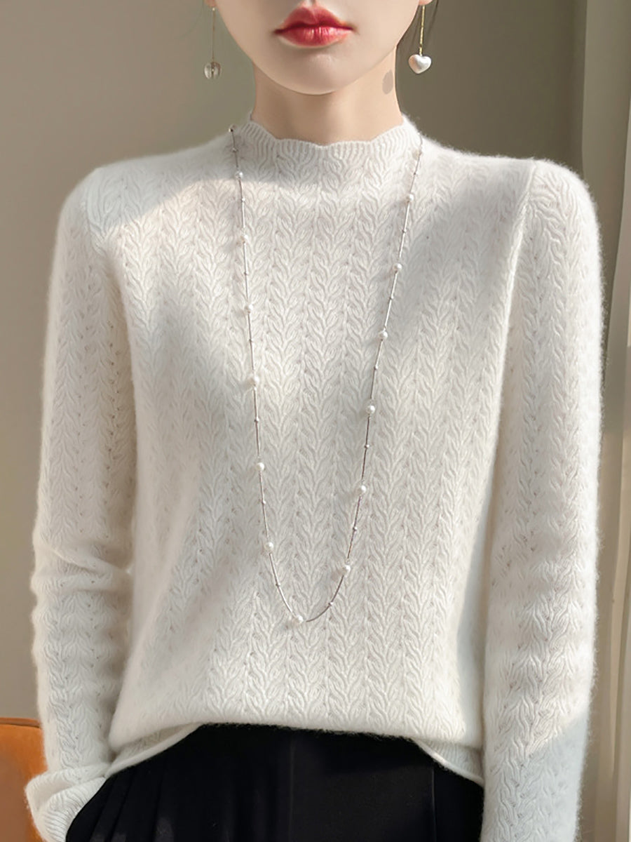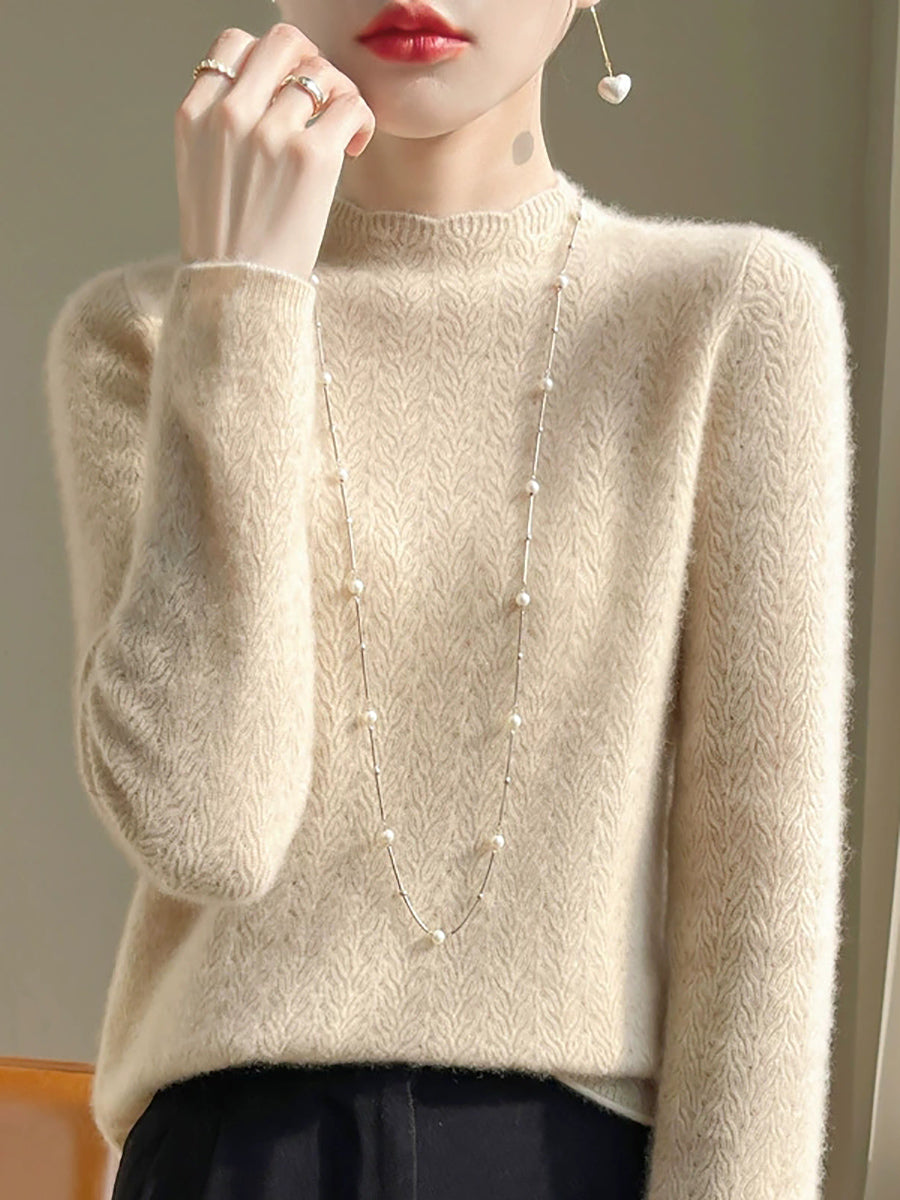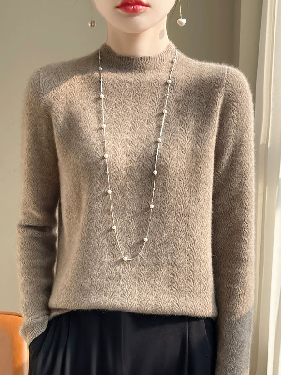 Women Winter Hook-patterned Half-Turtleneck Wool Sweater