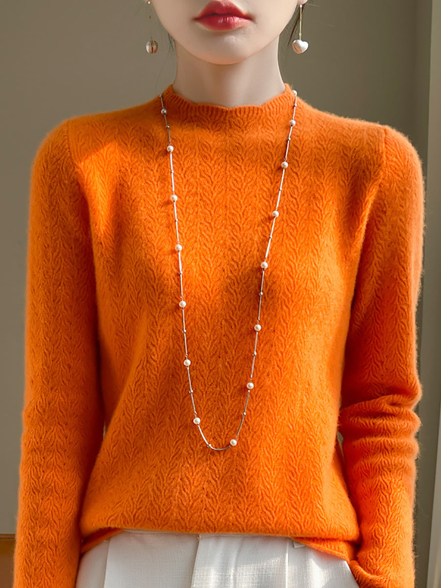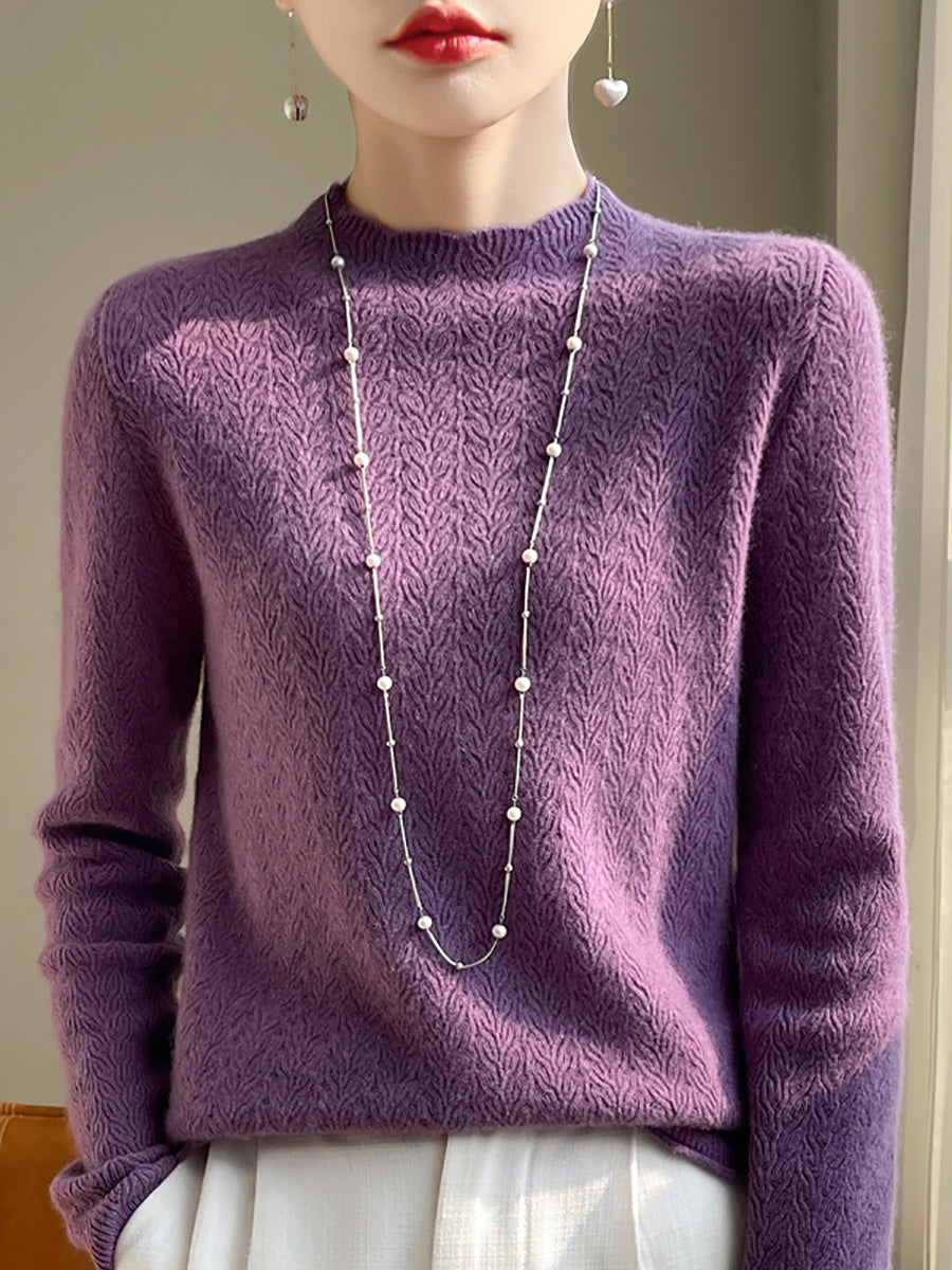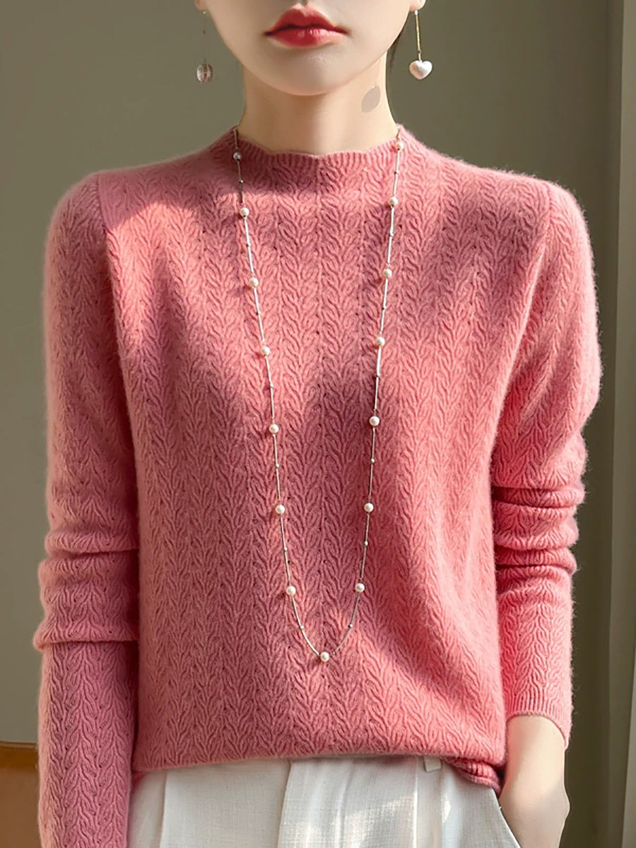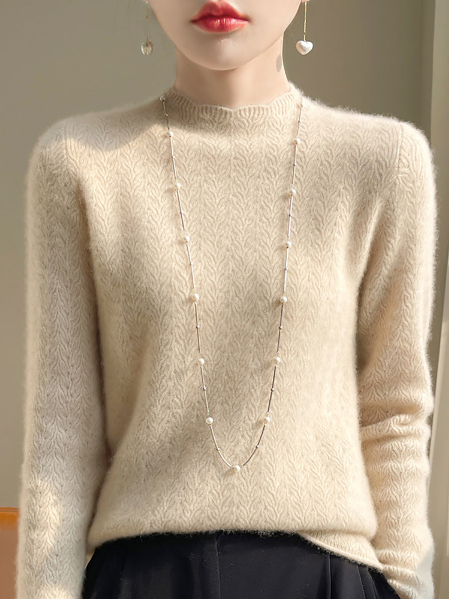 Women Winter Hook-patterned Half-Turtleneck Wool Sweater