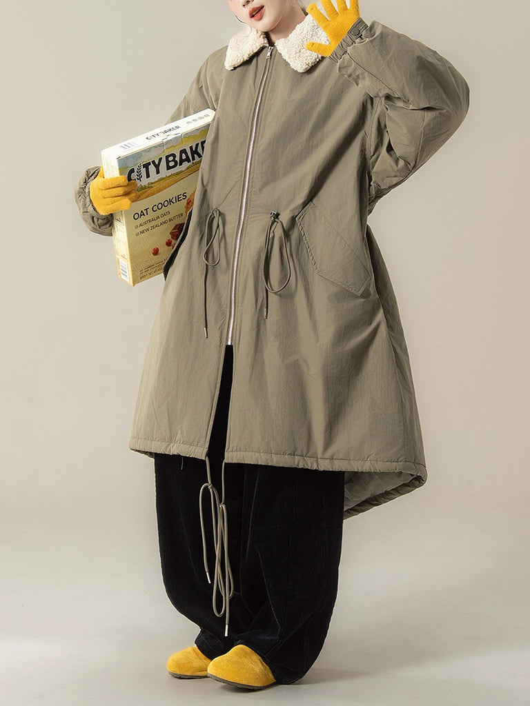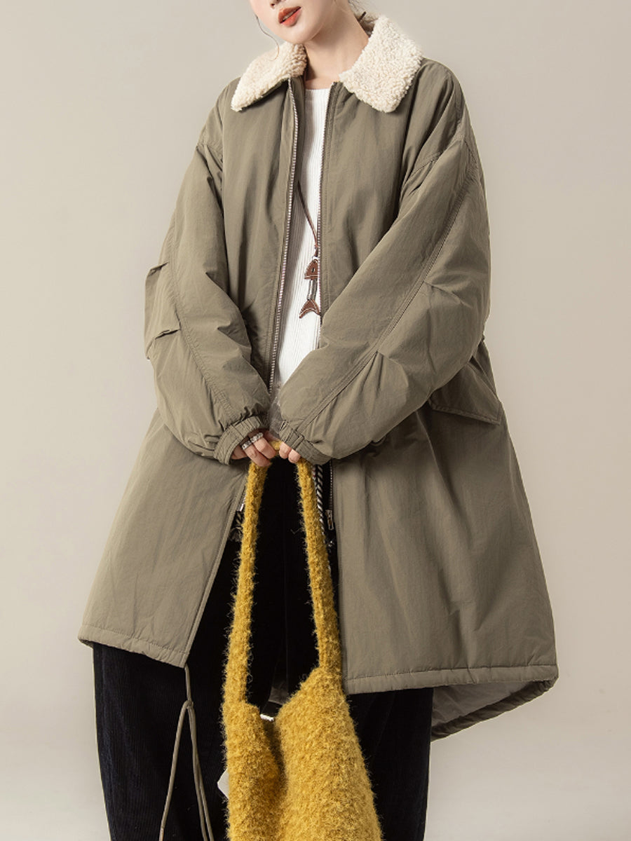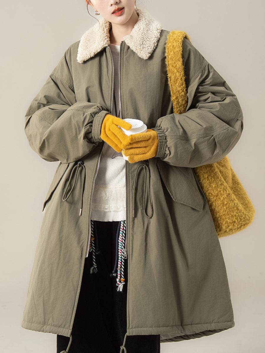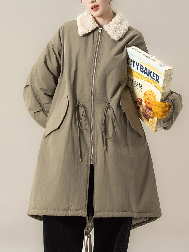 Women Winter Pure Color Fleece Collar Padded Coat