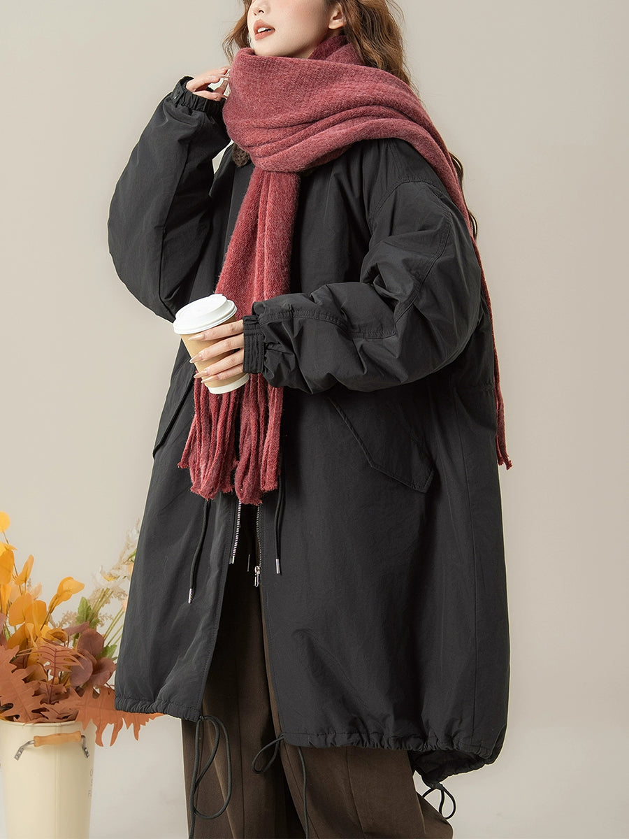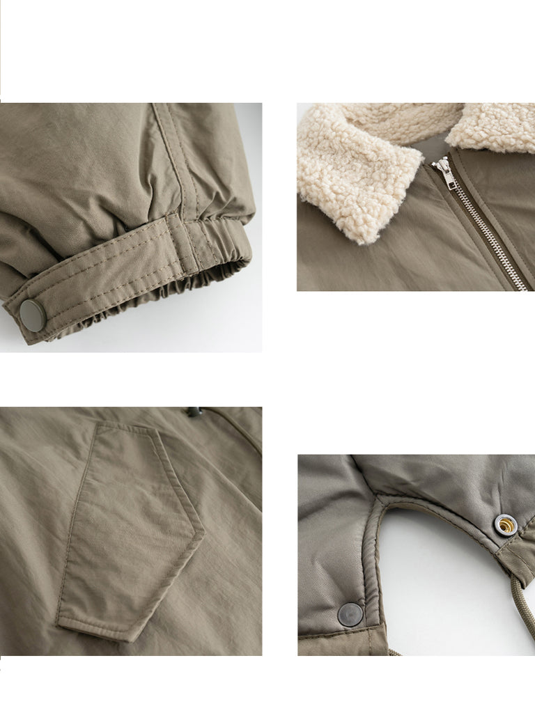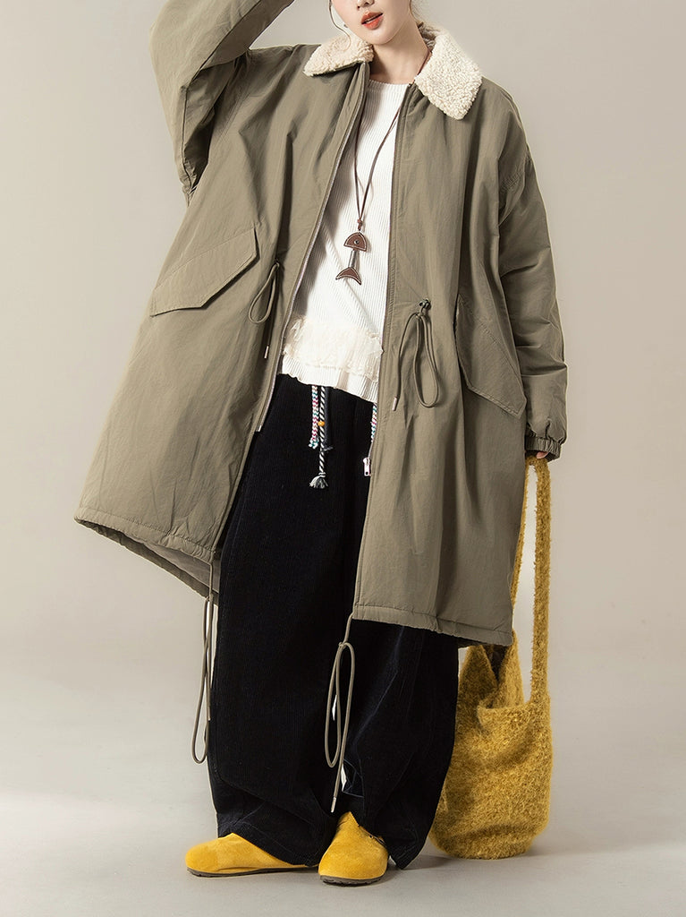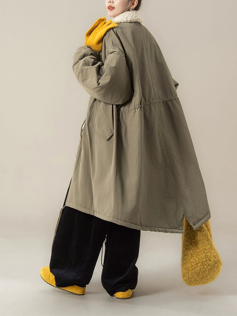 Women Winter Pure Color Fleece Collar Padded Coat