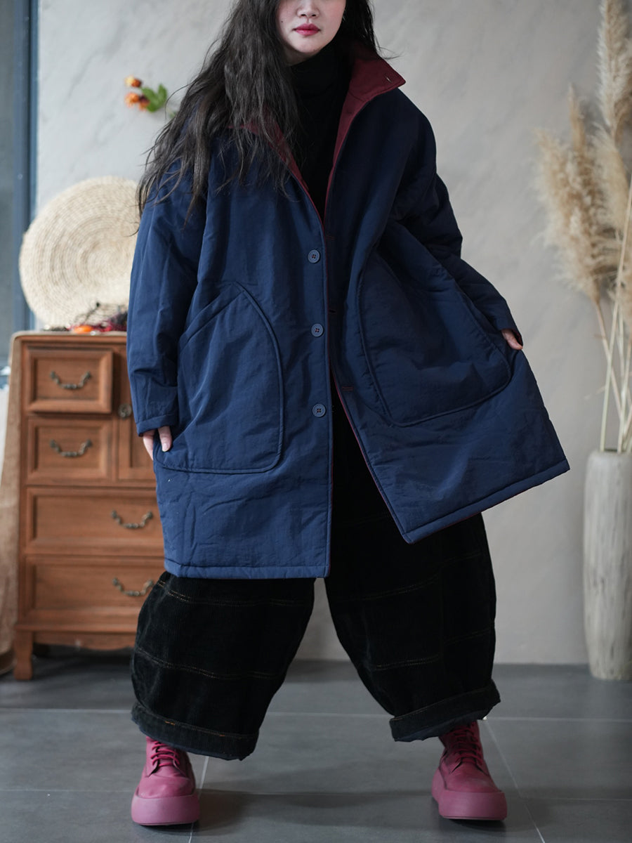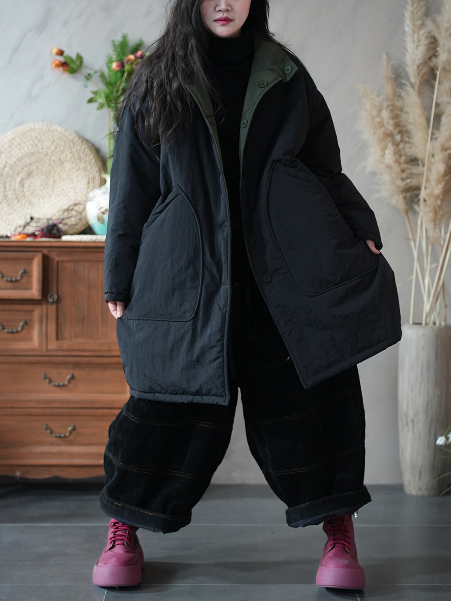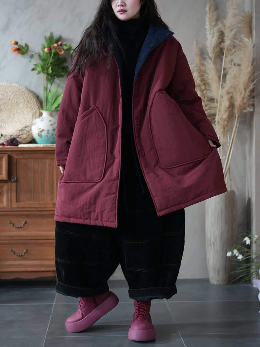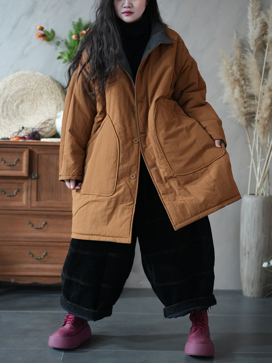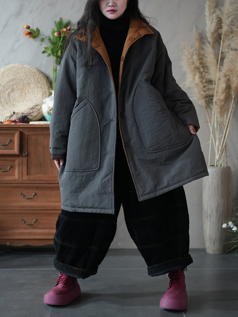 Women Winter Pure Color Two-sided Wearing Padded Overcoat