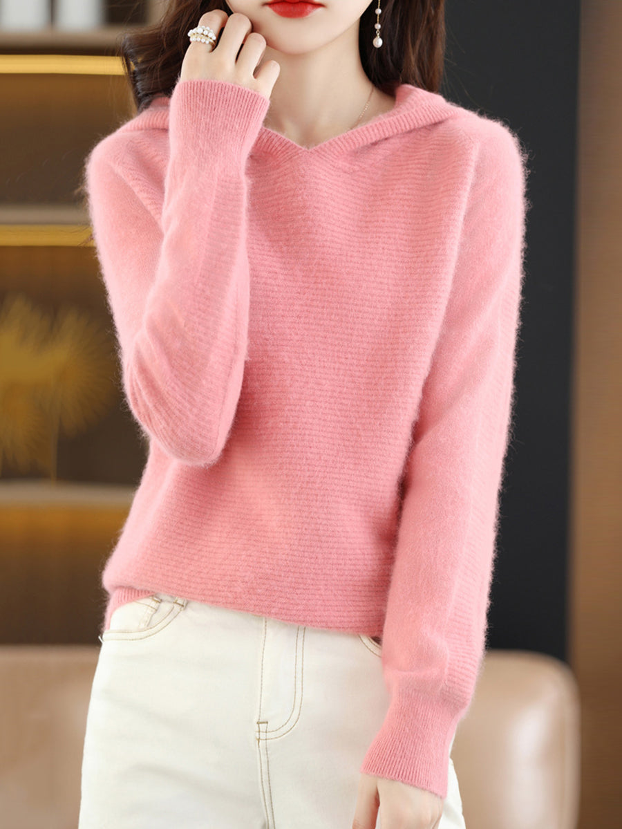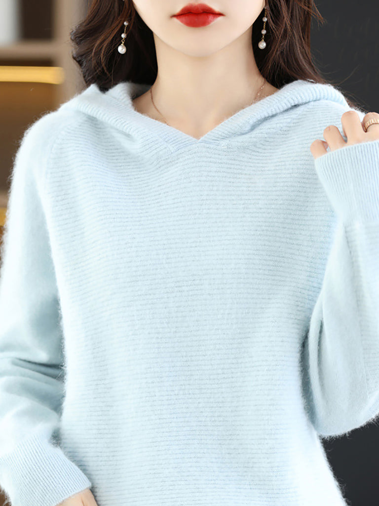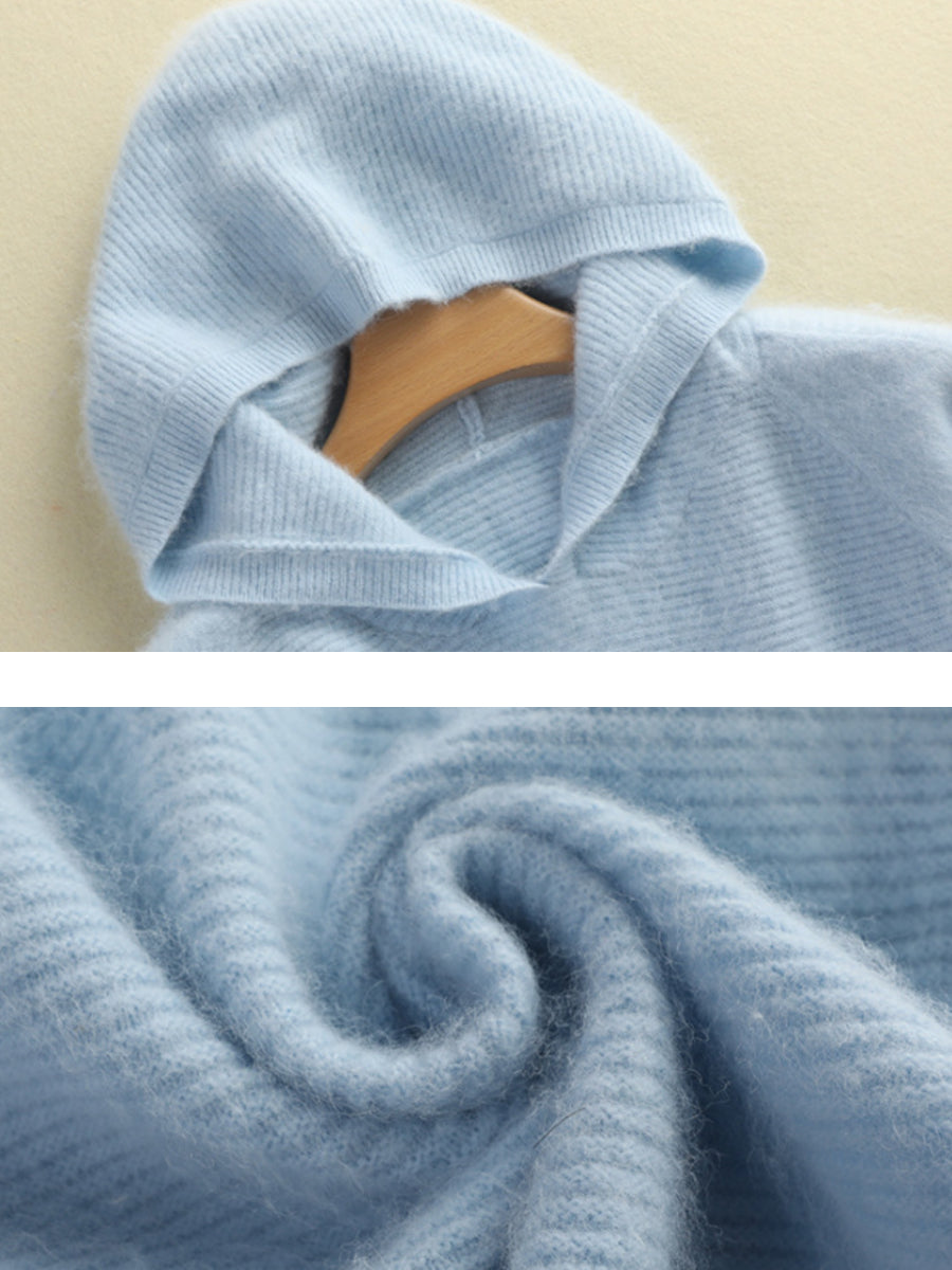 Women Winter Pure Color Hooded Sweater