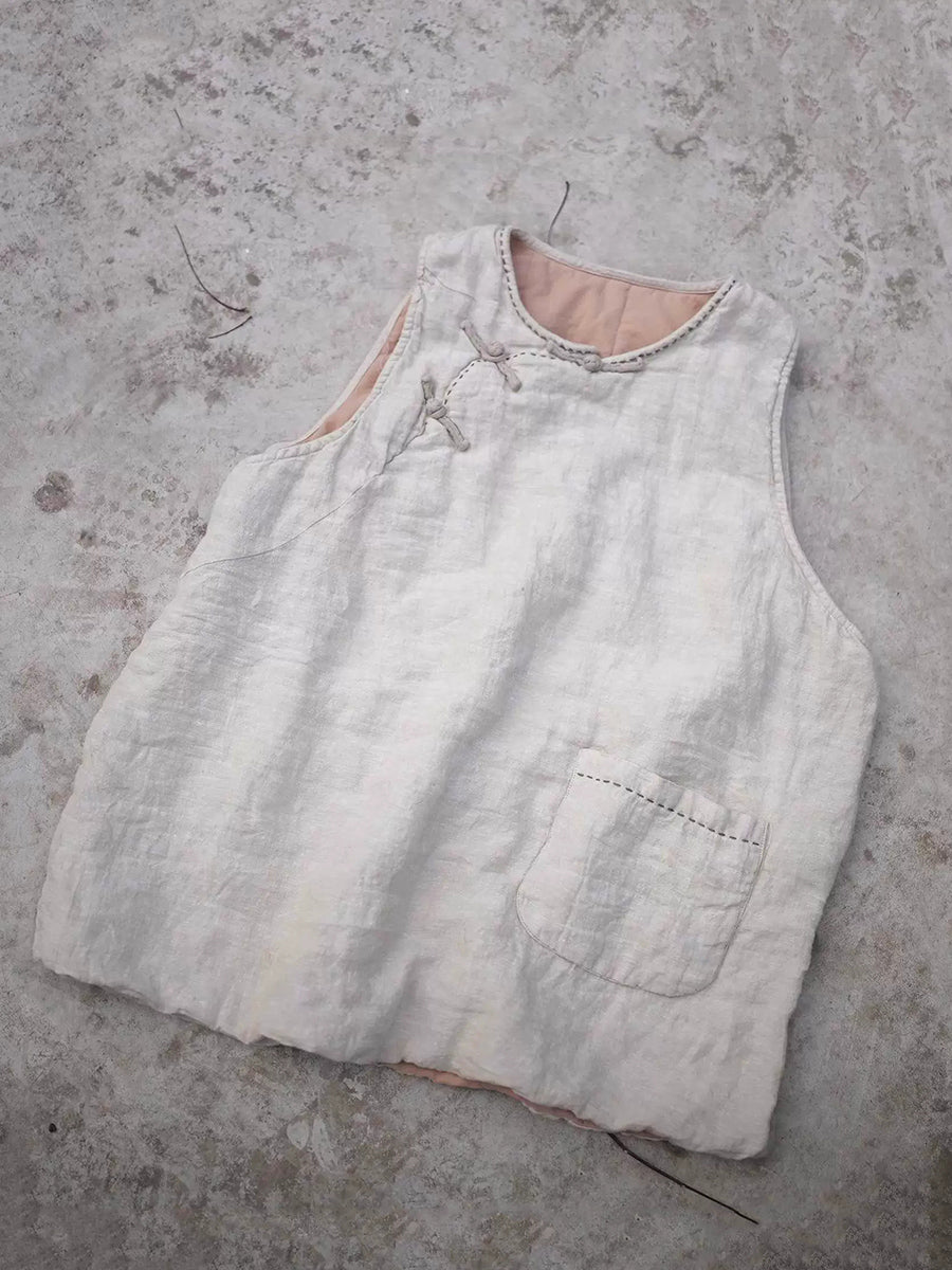 This sophisticated linen padded vest combines functional warmth with understated elegance. Featuring a refined o-neck design and solid colorway, it embodies an ethnic aesthetic that complements contemporary wardrobes. The linen fabric delivers natural breathability and durability, making it an ideal layering solution for autumn and winter seasons. A versatile staple that bridges seasonal transitions with effortless style.