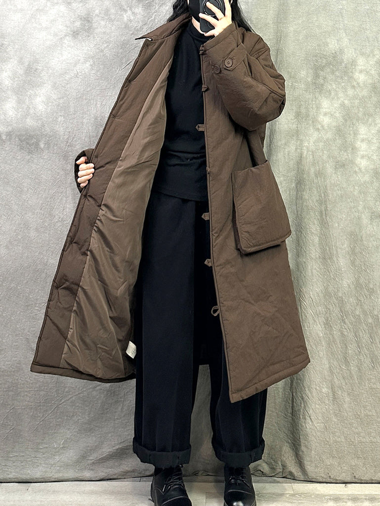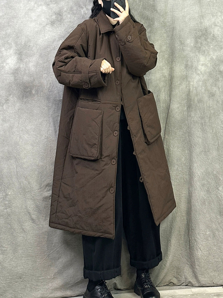 Women Winter Pure Color Padded Turn-down Collar Long Coat
