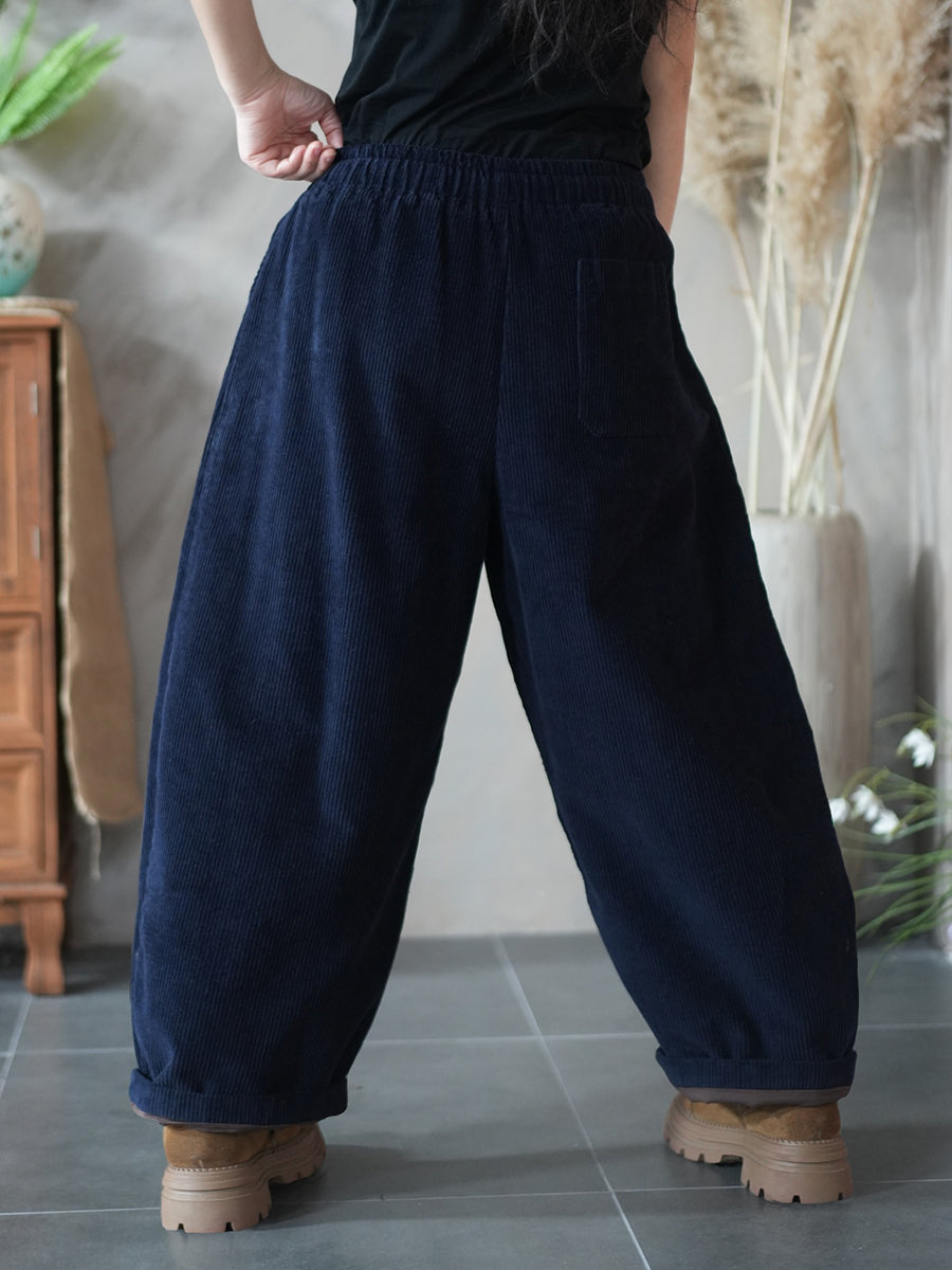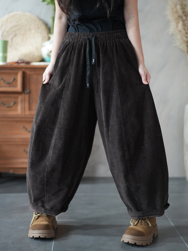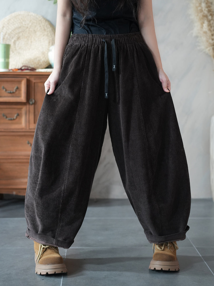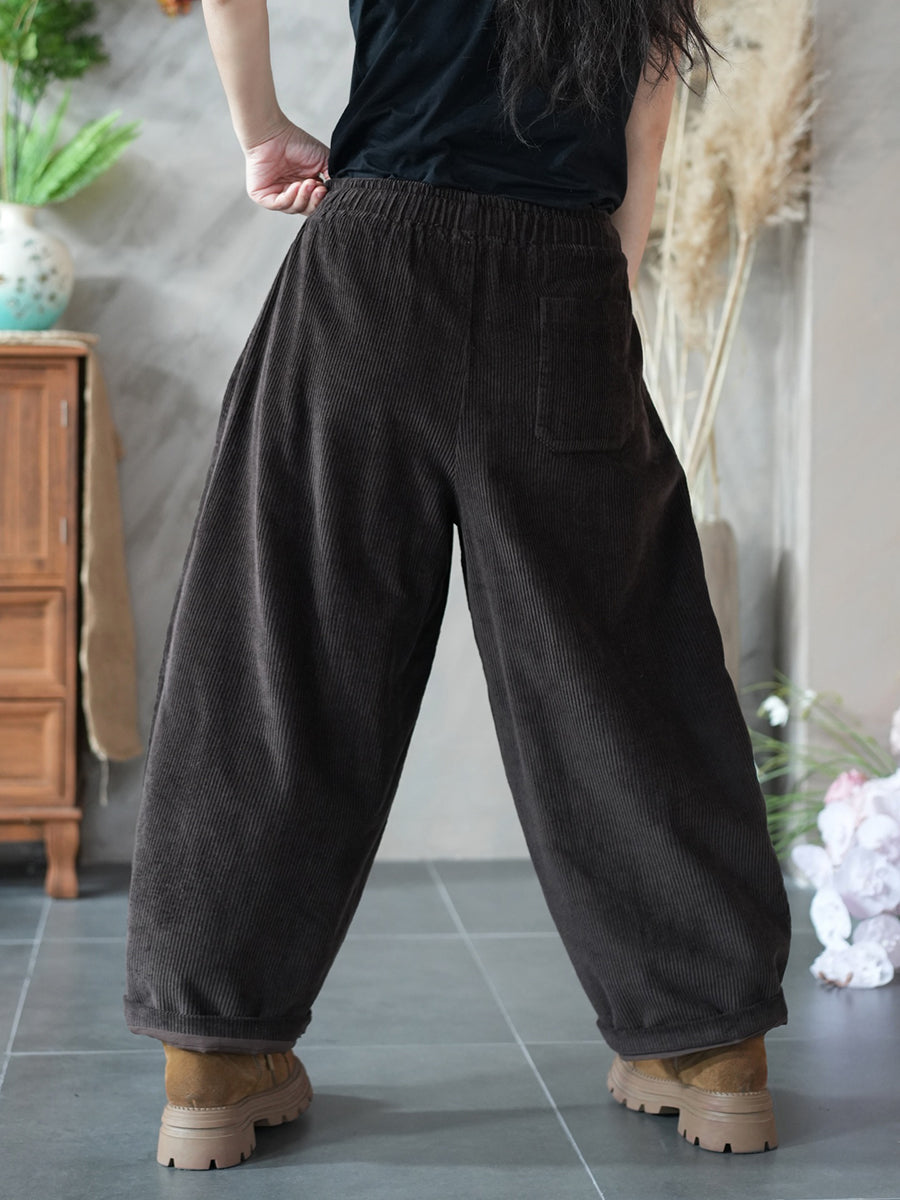 Women Winter Retro Pure Color Corduroy Harem Pants