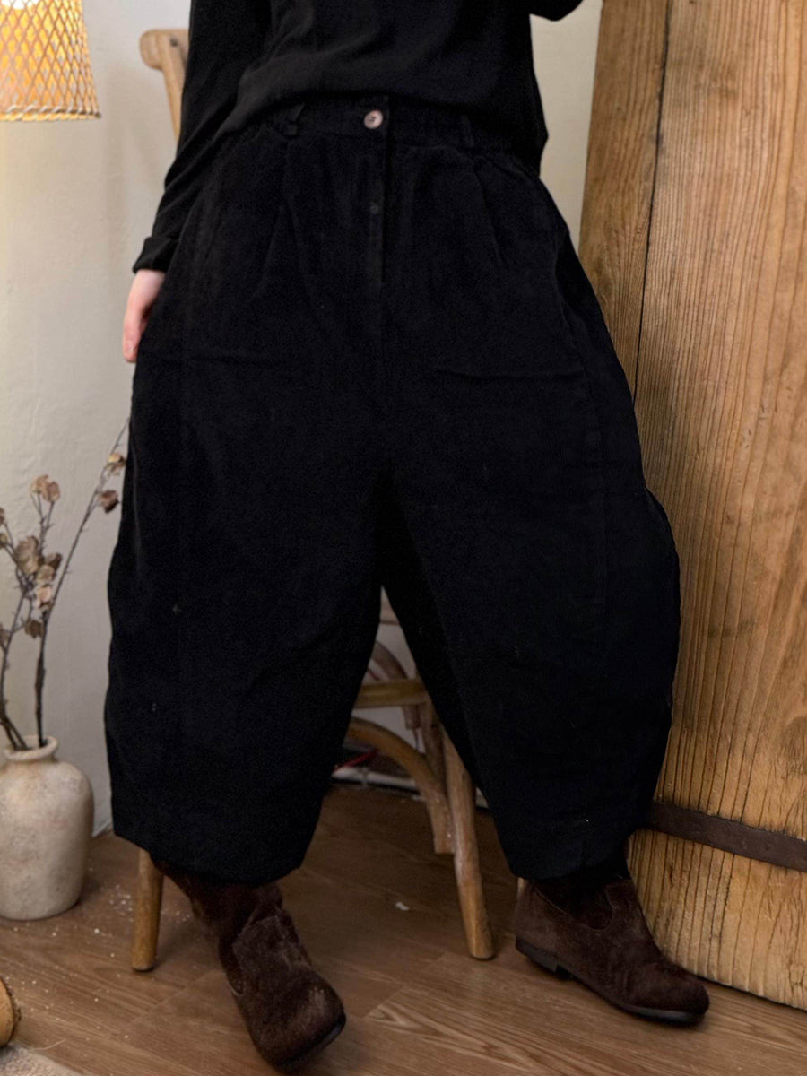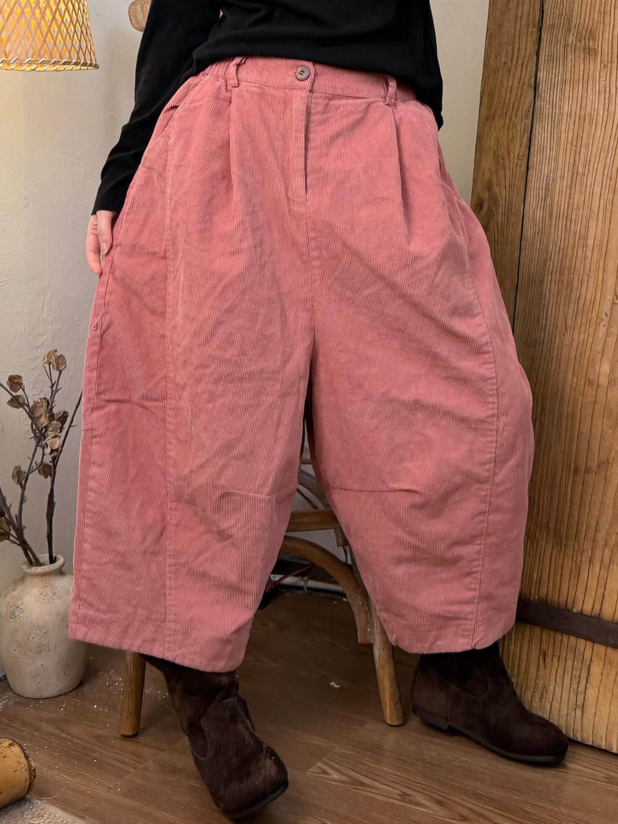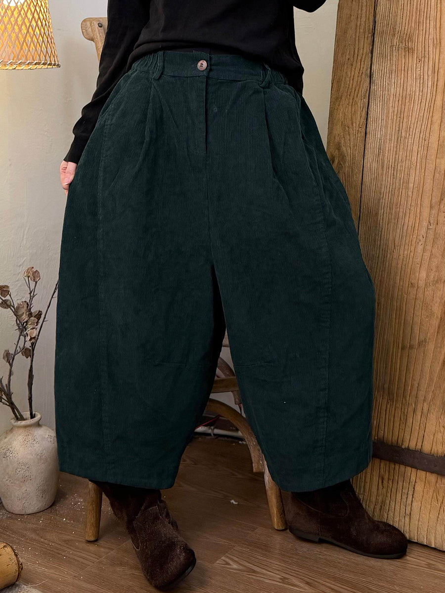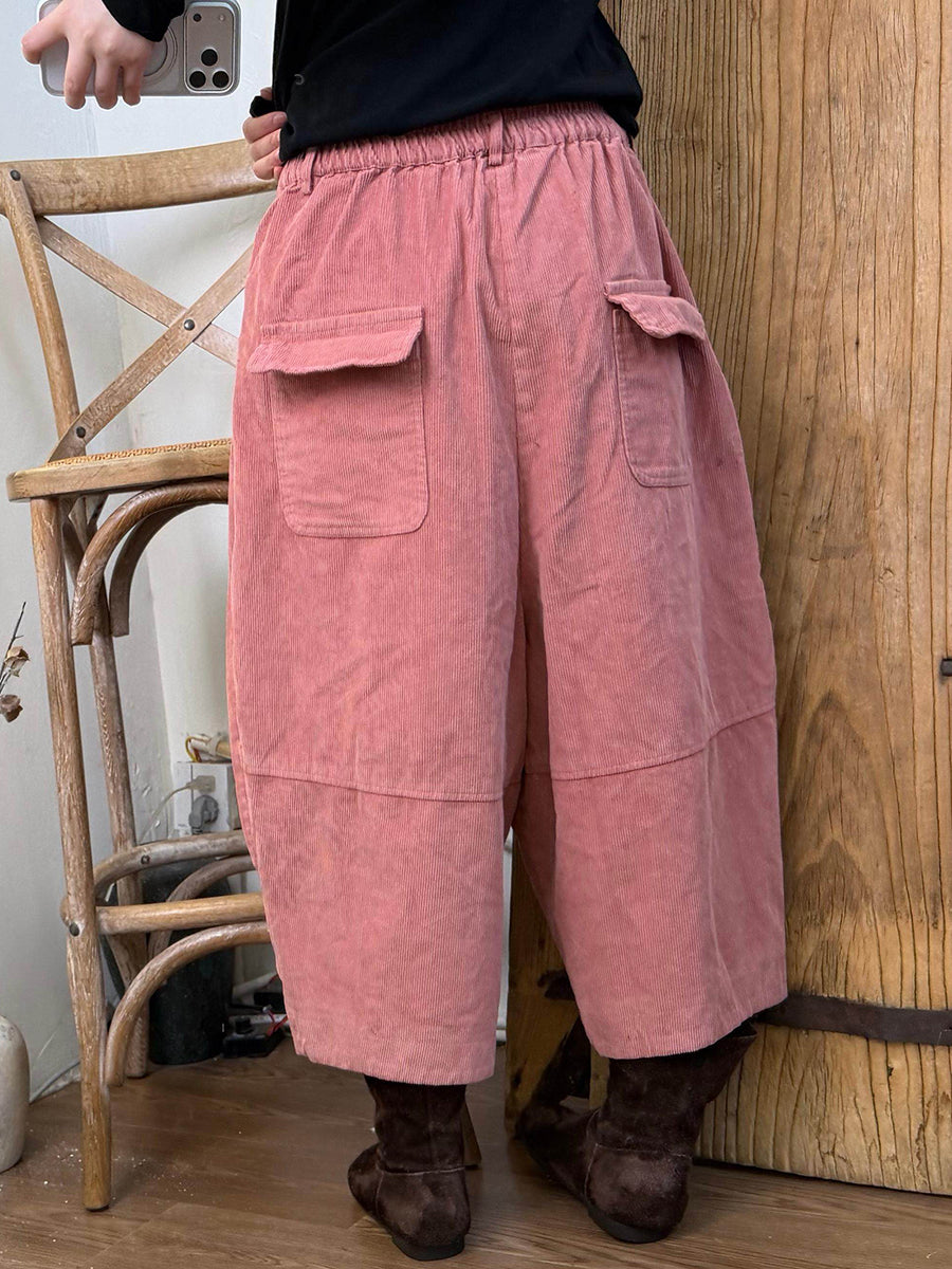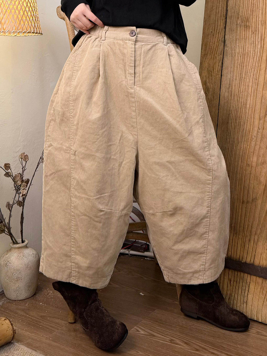 Women Winter Retro Pure Color Corduroy Harem Pants