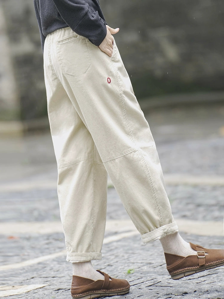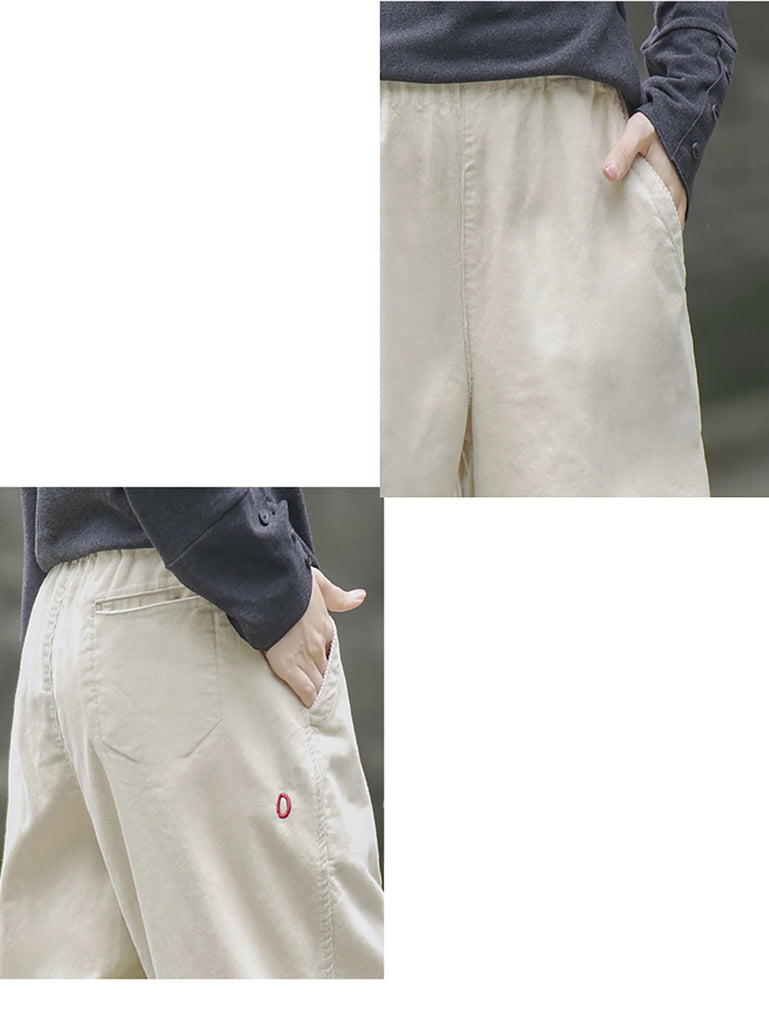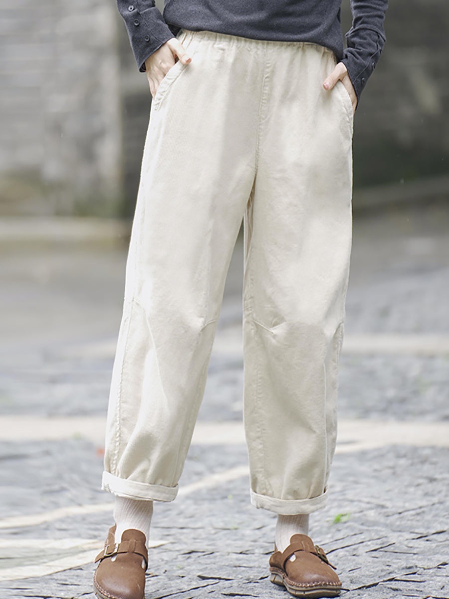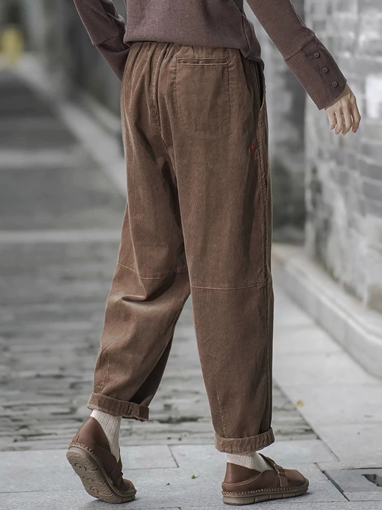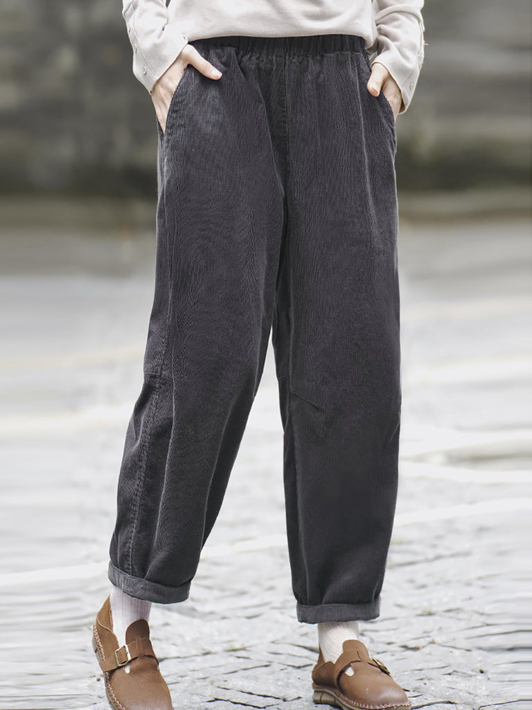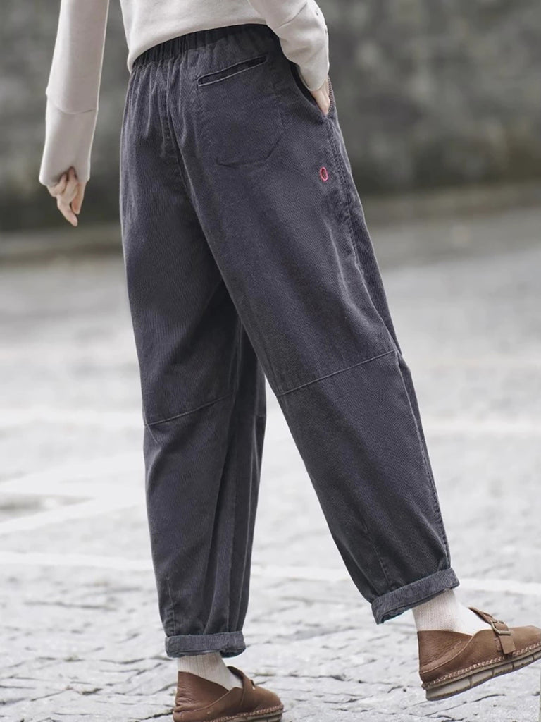 Women Winter Retro Pure Color Corduroy Thick Harem Pants