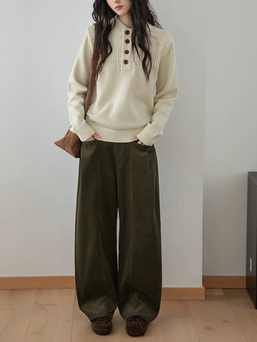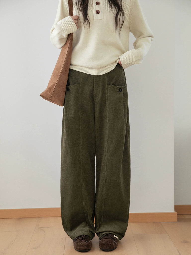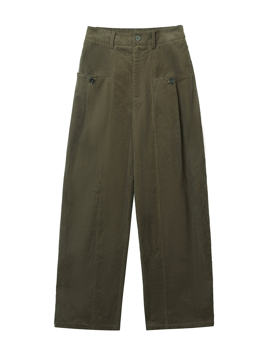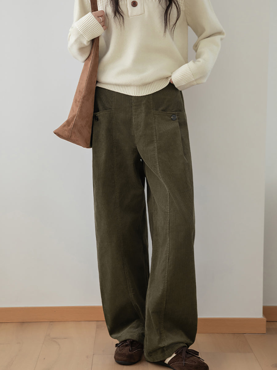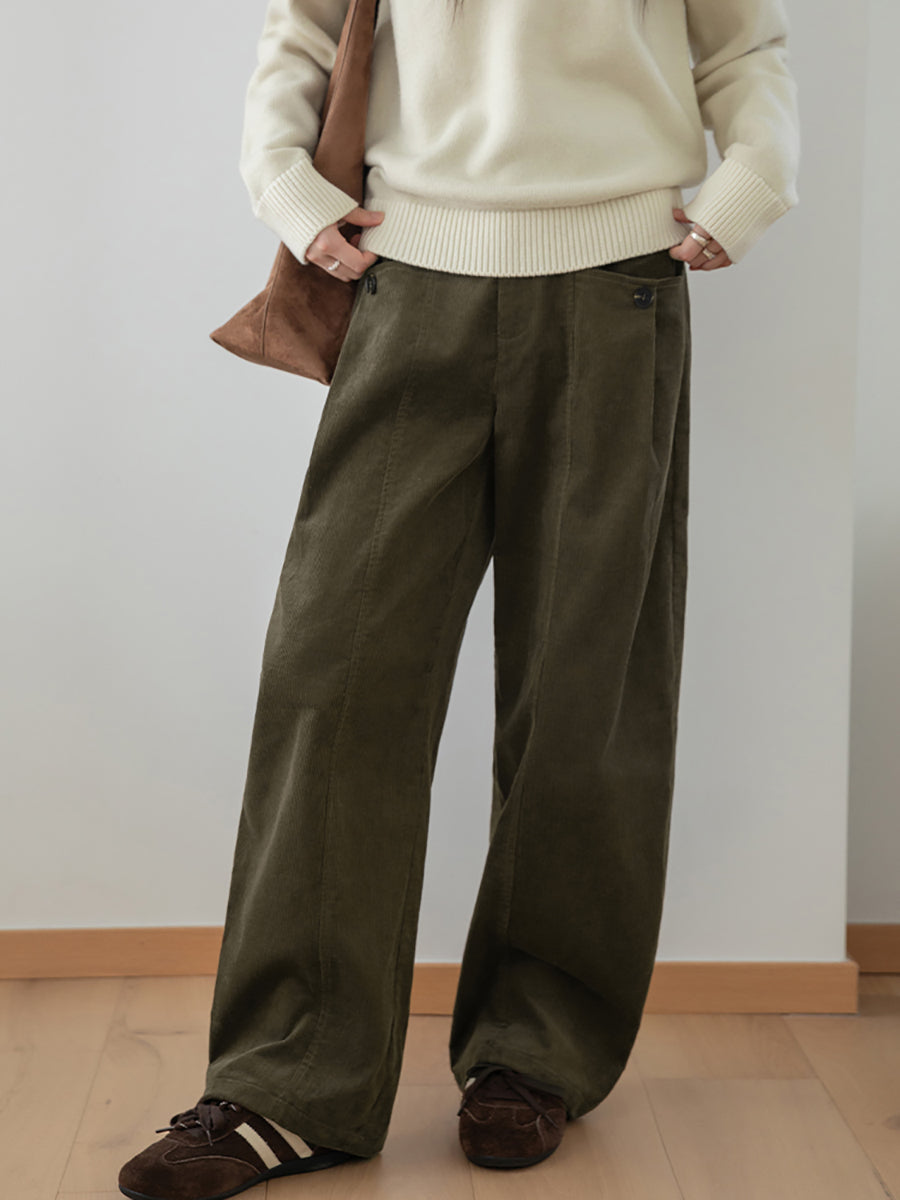 Women Winter Retro Pure Color Corduroy Wide-leg Pants