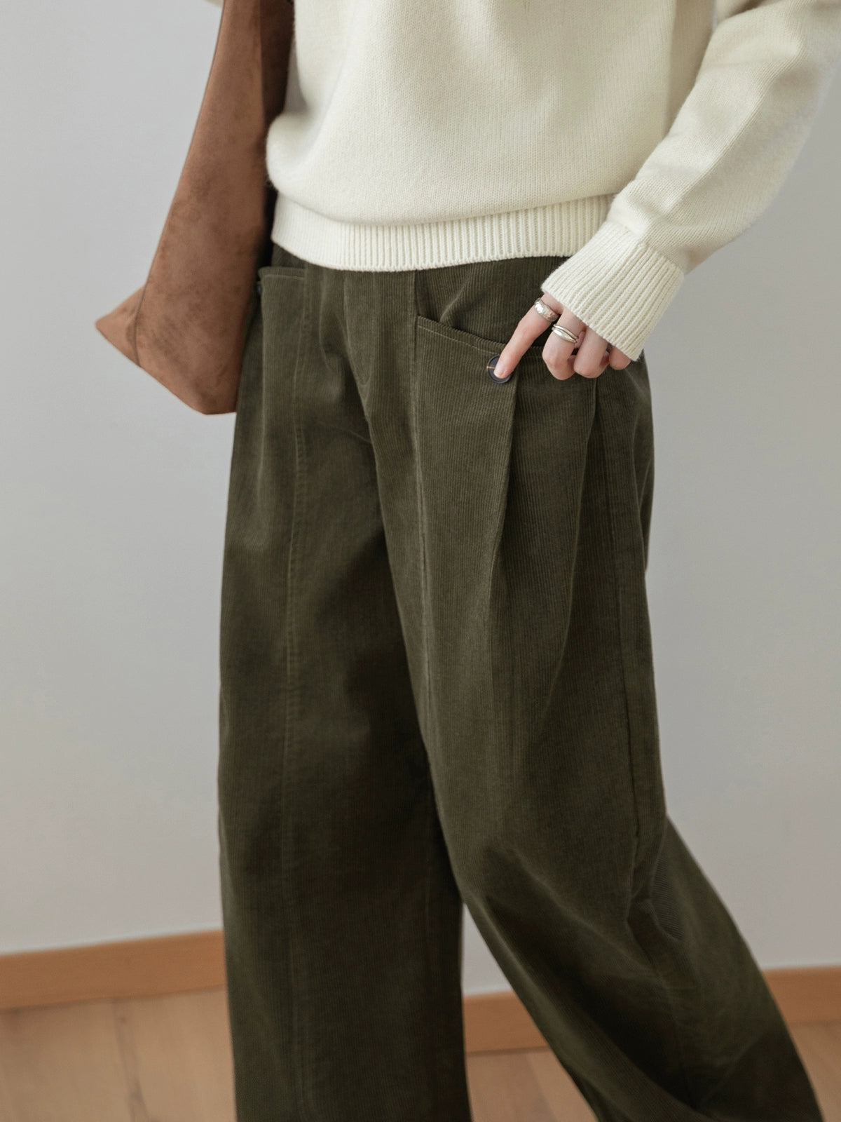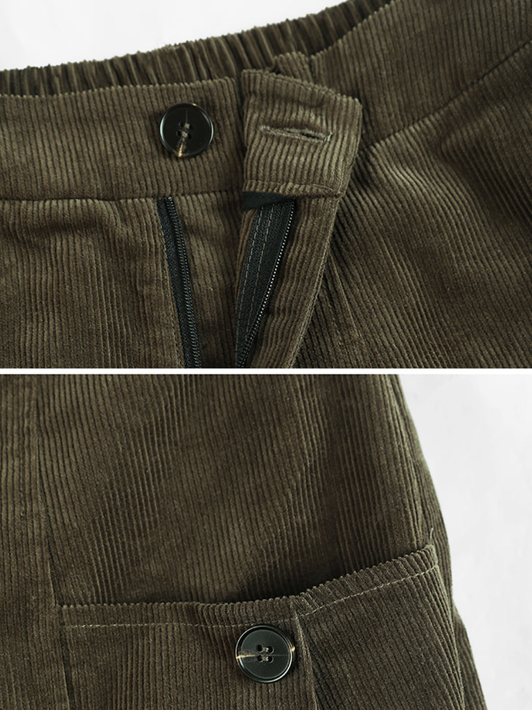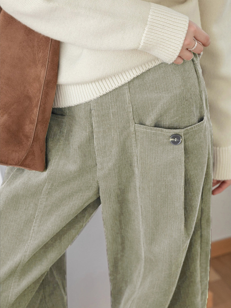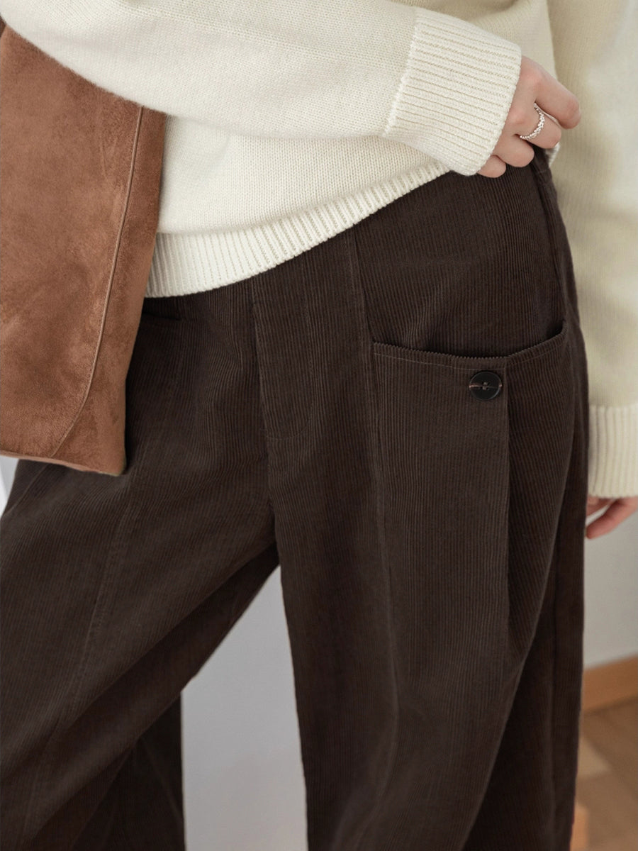 Women Winter Retro Pure Color Corduroy Wide-leg Pants