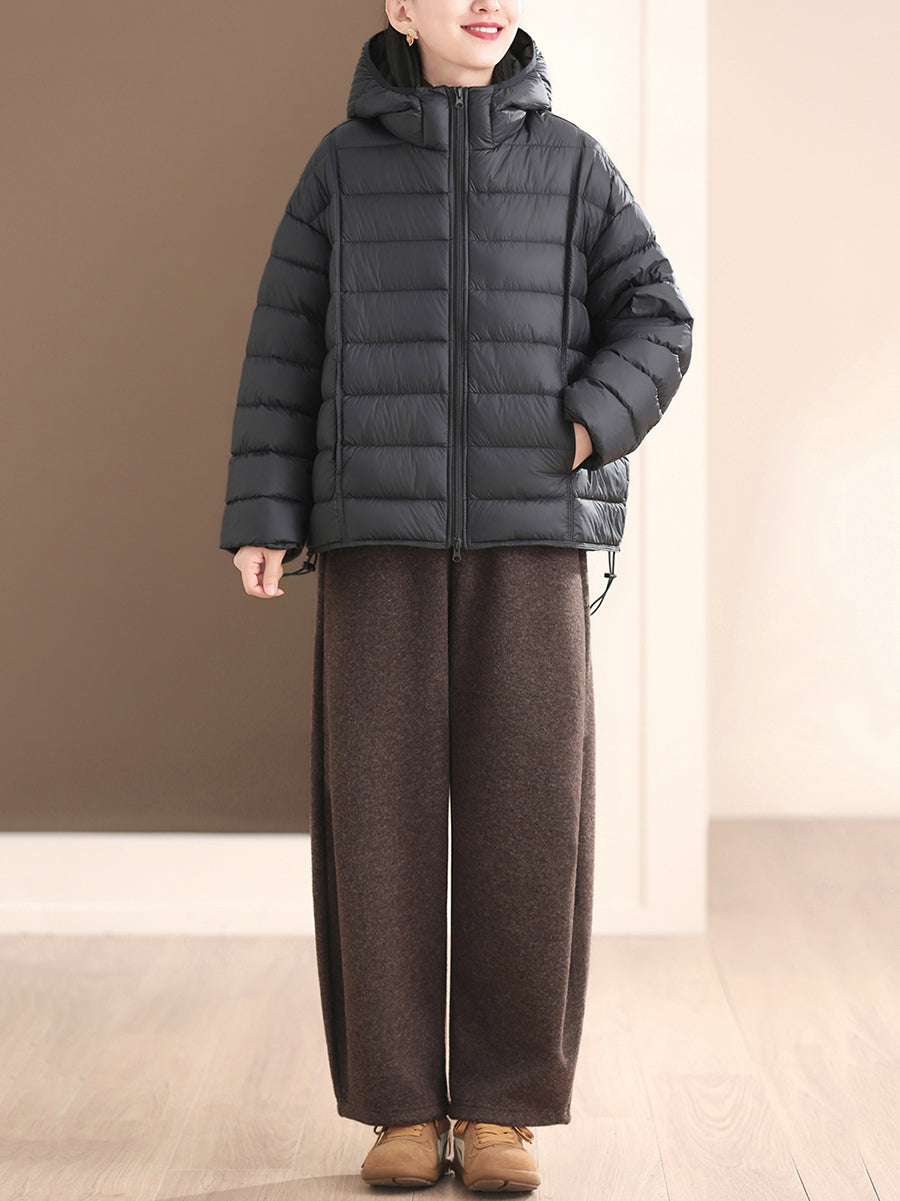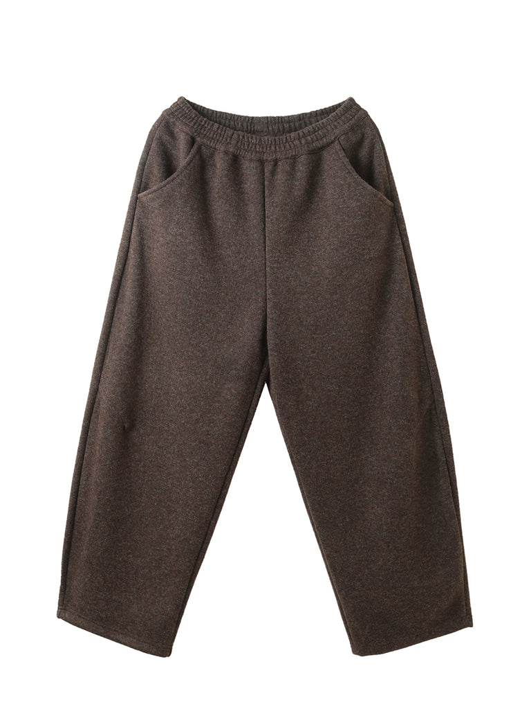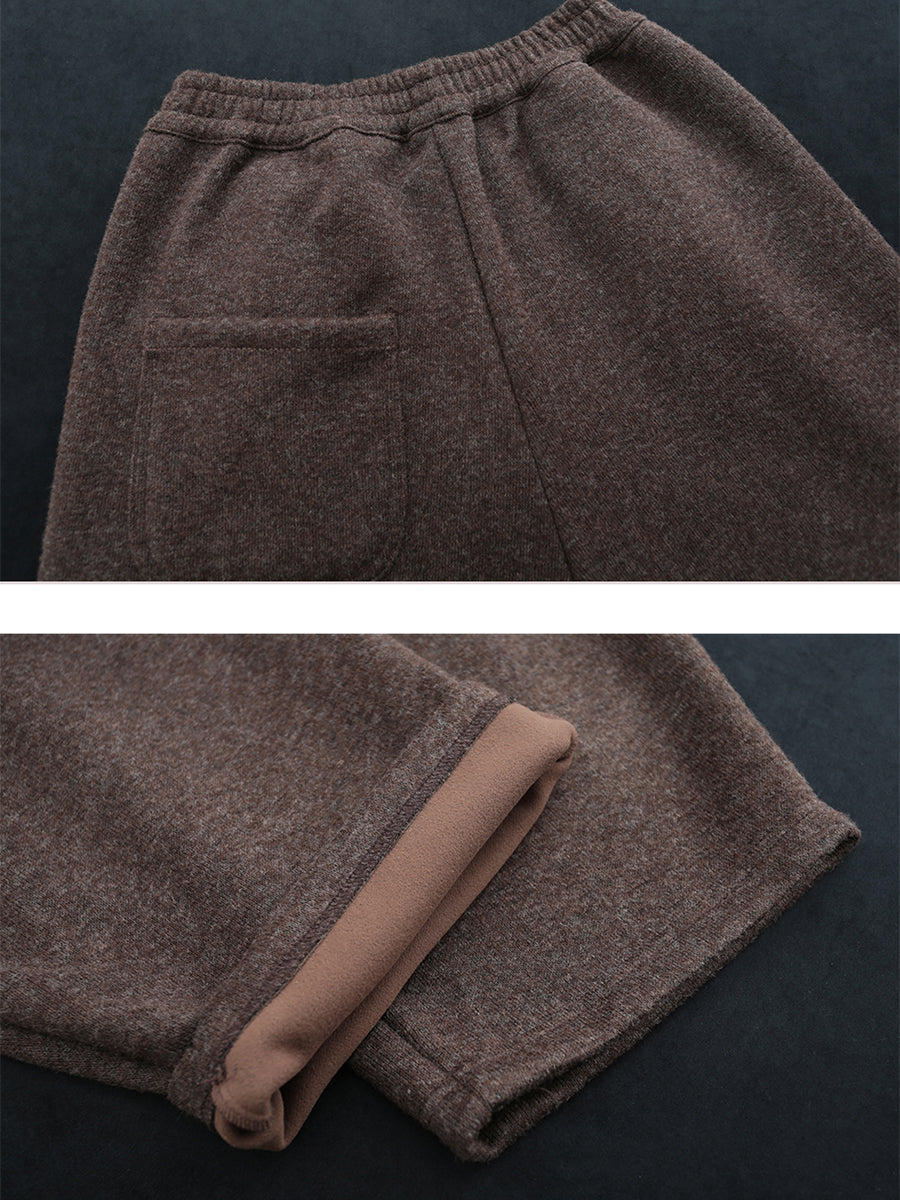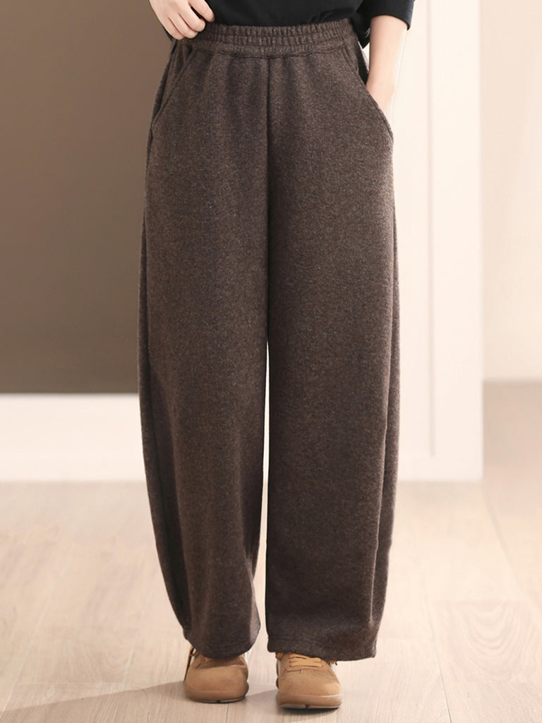 Women Winter Retro Pure Color Fleece-lined Wide-leg Pants