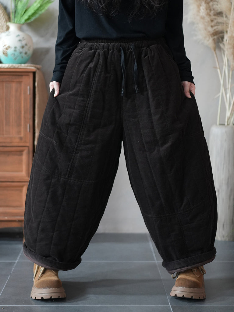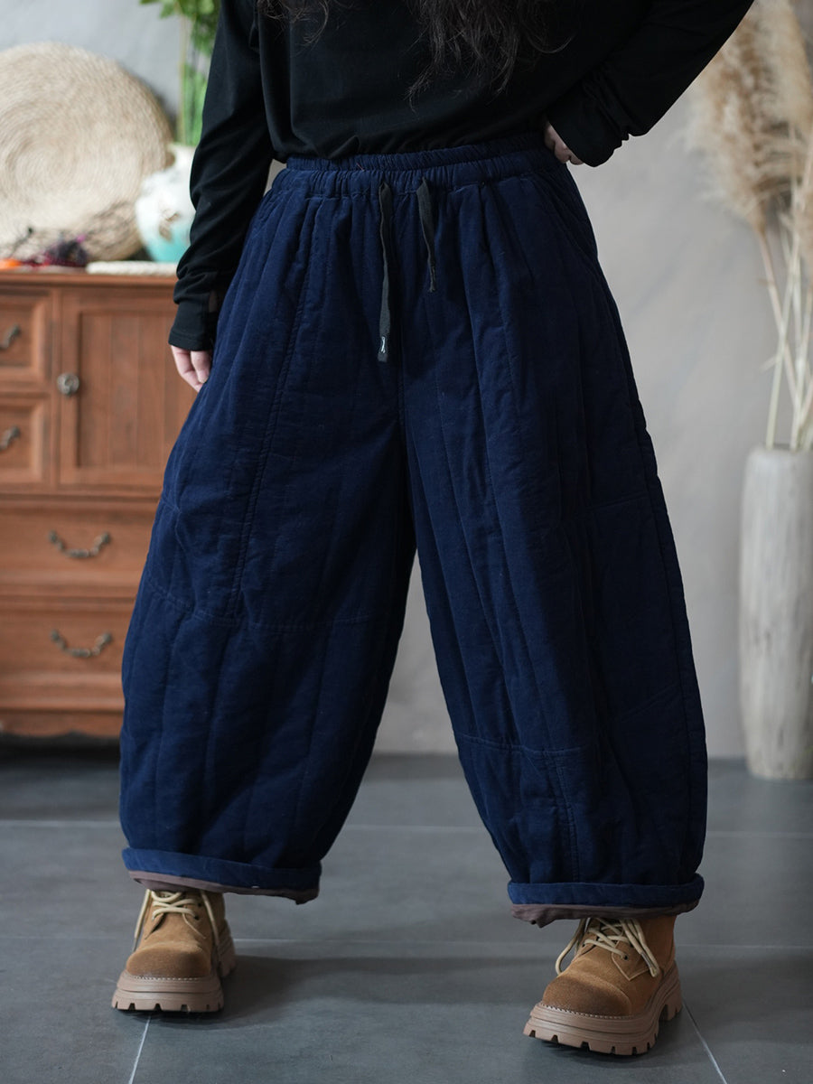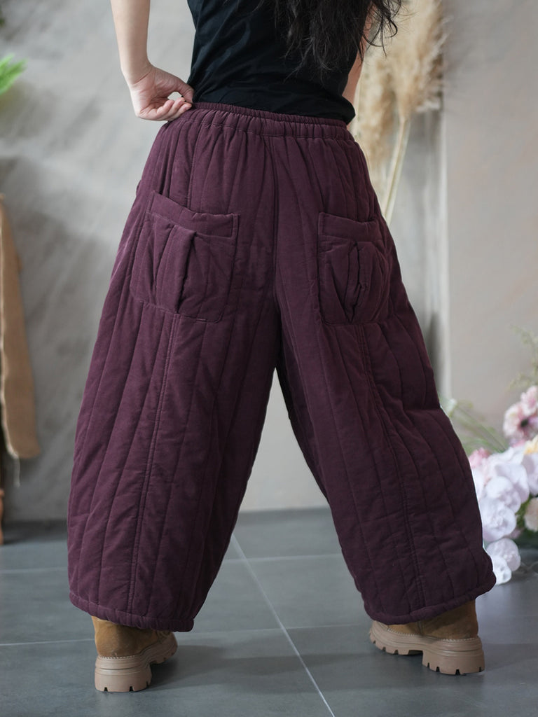 Women Winter Retro Pure Color Padded Wide-leg Pants