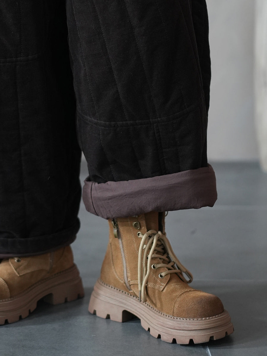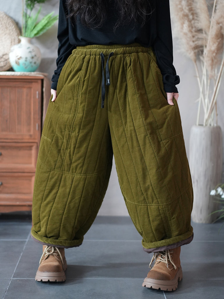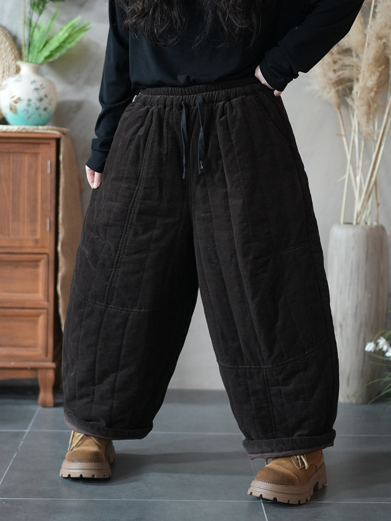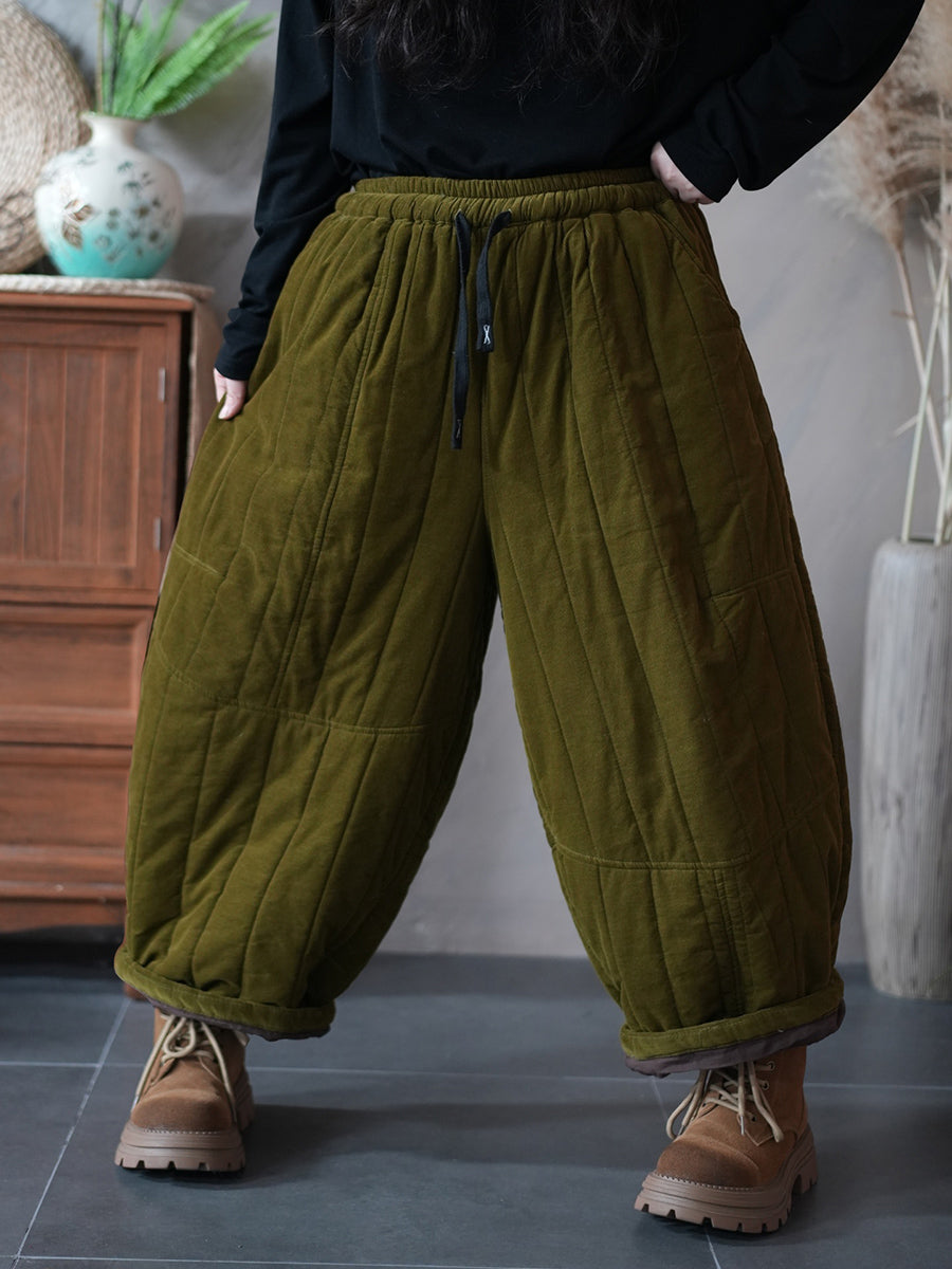 Women Winter Retro Pure Color Padded Wide-leg Pants