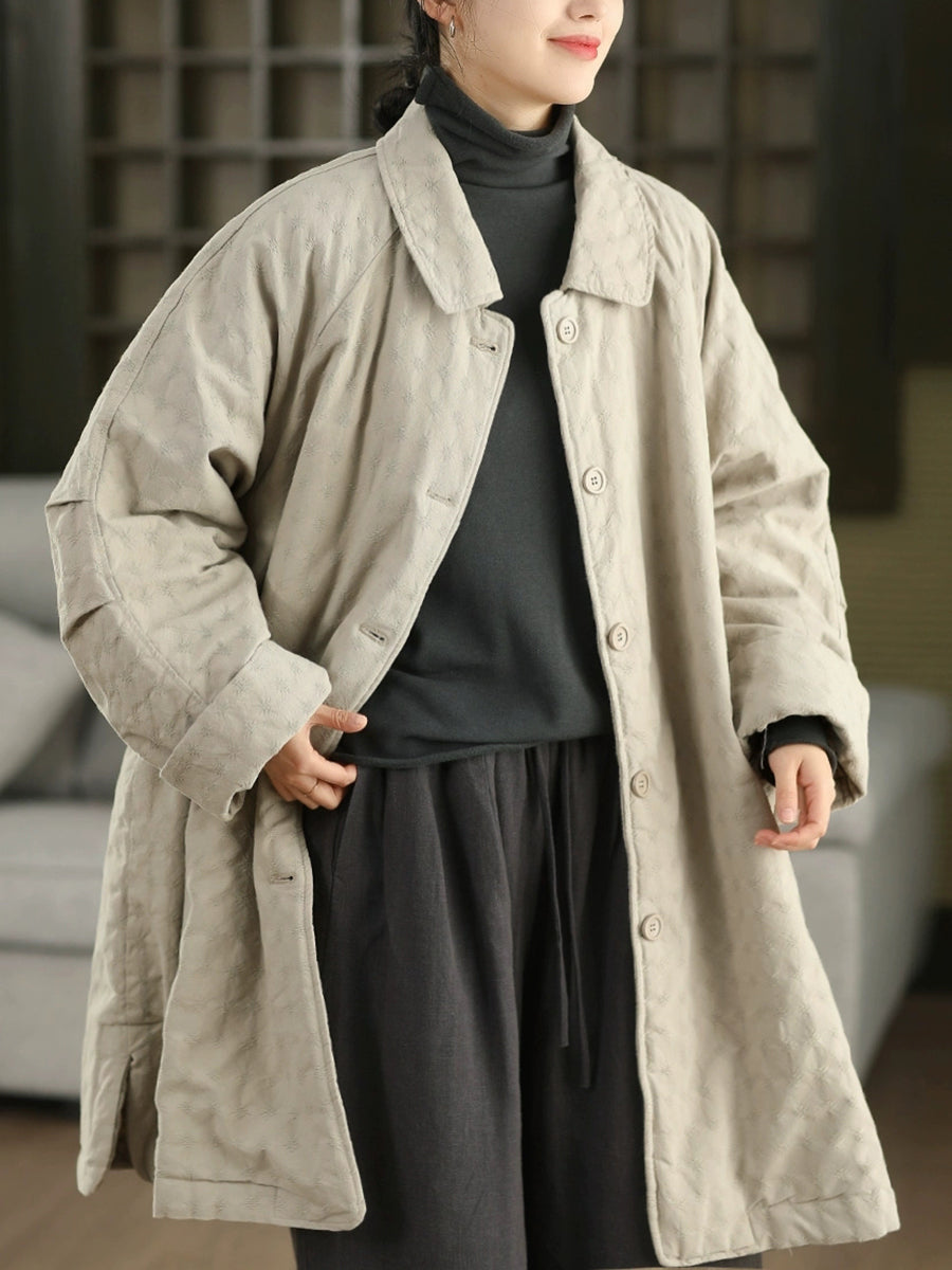 Women Winter Retro Jacquard Turn-down Collar Coat