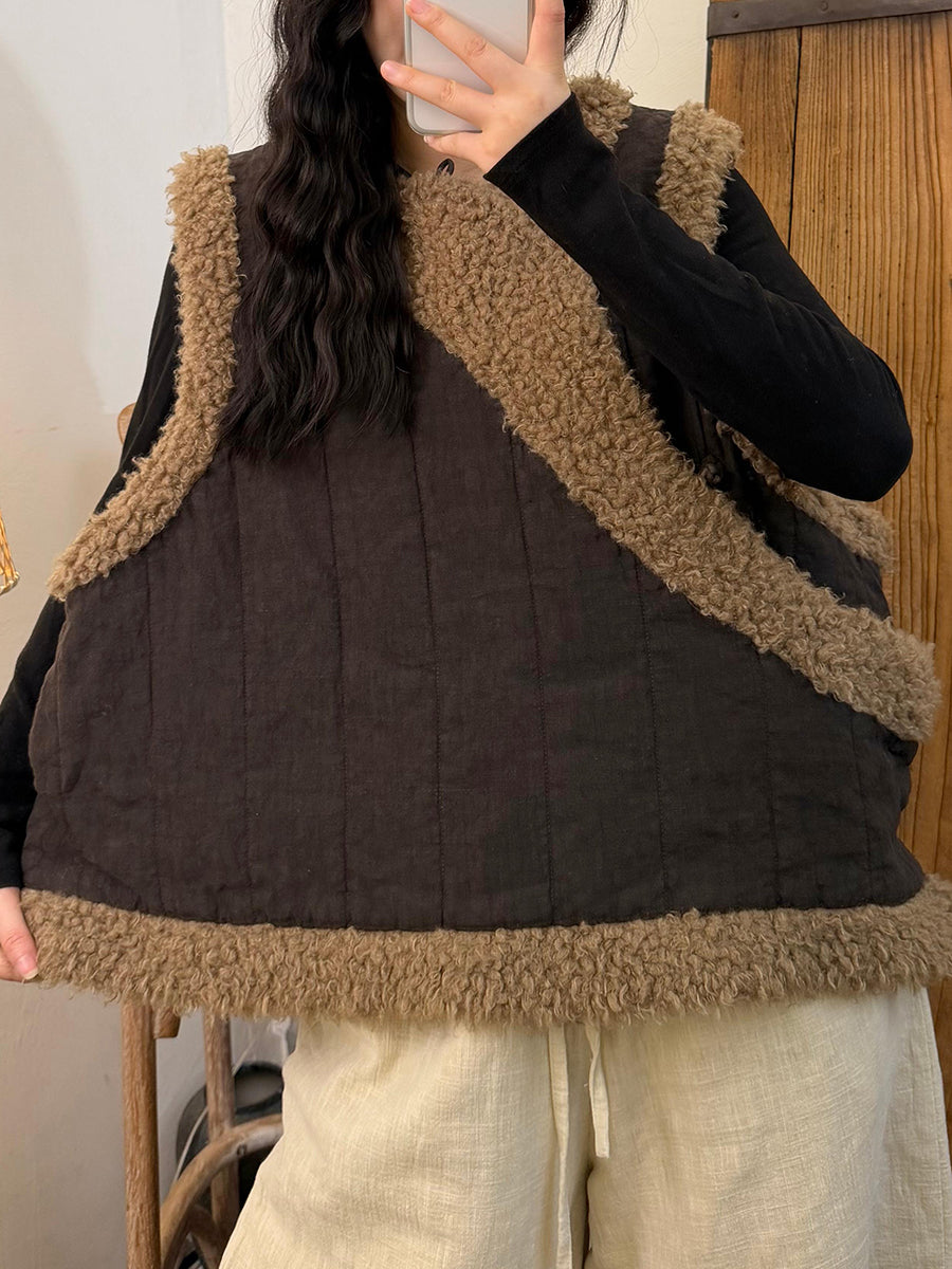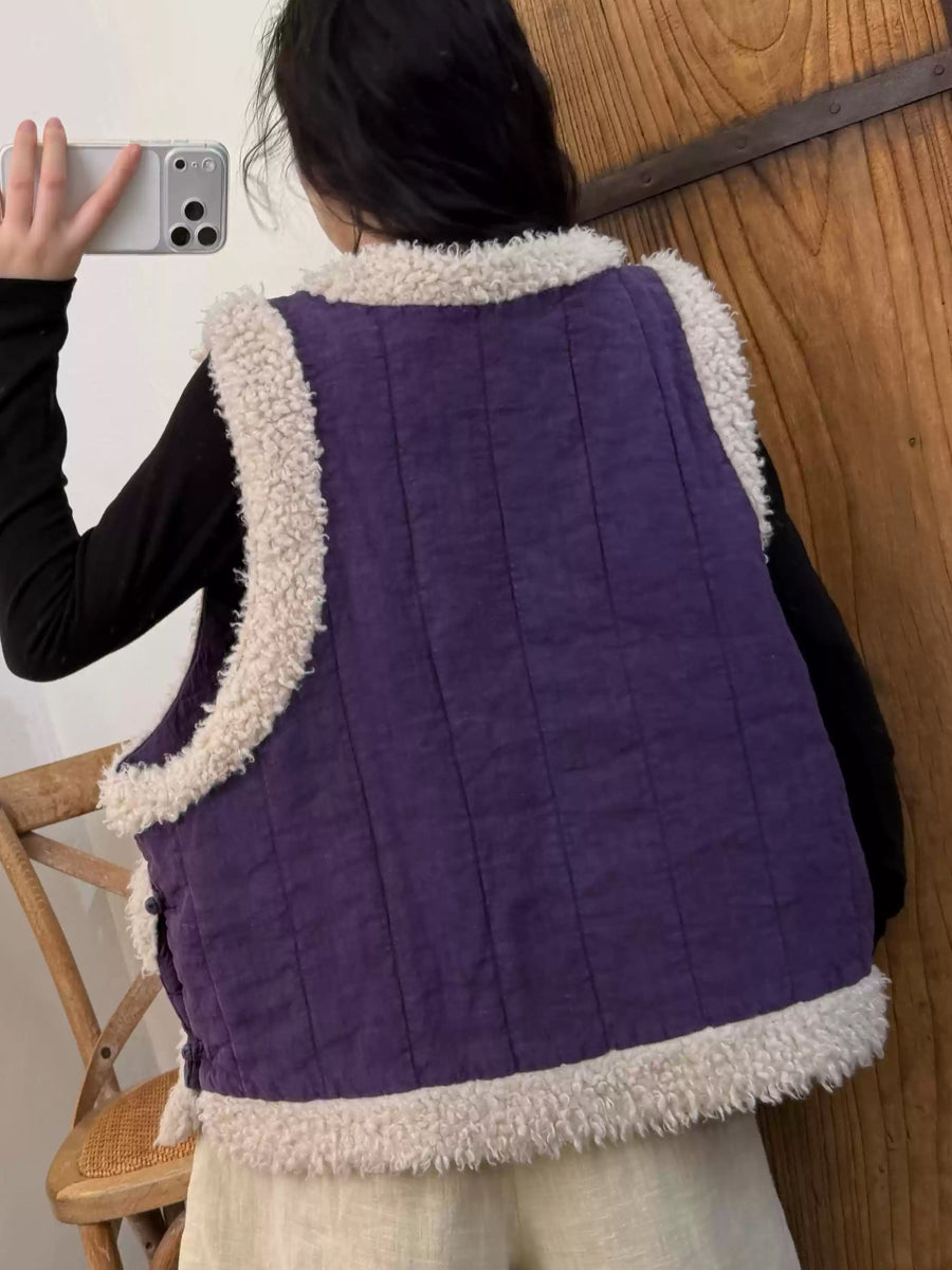 Crafted from premium linen with meticulous attention to detail, this vintage-inspired padded vest delivers sophisticated warmth for transitional seasons. The classic o-neck silhouette and solid colorway embody timeless elegance, while the fleece-linen splice construction provides optimal insulation without excess bulk. Ideal for layering during autumn and winter months, this piece seamlessly bridges contemporary styling with heritage design sensibilities.
