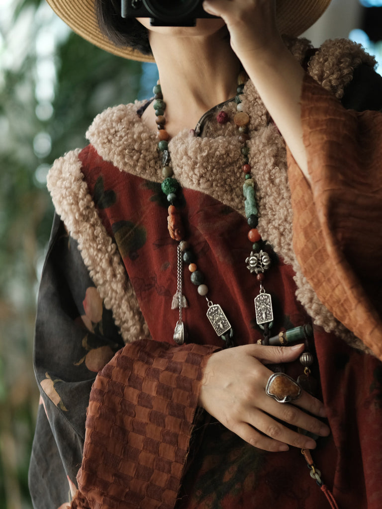Crafted from premium cotton with a timeless vintage aesthetic, this winter vest features an elegant floral pattern and classic crew neckline. Designed for cool-weather layering, the padded construction provides warmth without bulk, making it an ideal transitional piece for autumn and winter seasons. The spliced fleece lining adds comfort and insulation, while the refined floral motif brings sophisticated style to any wardrobe.