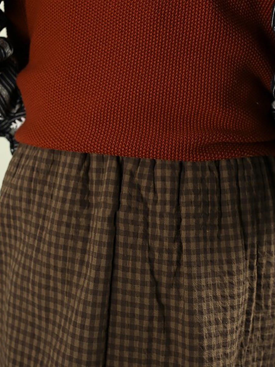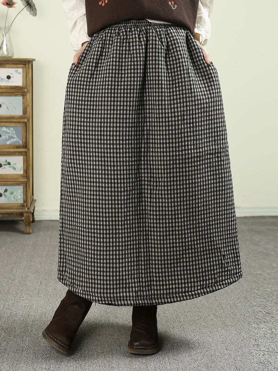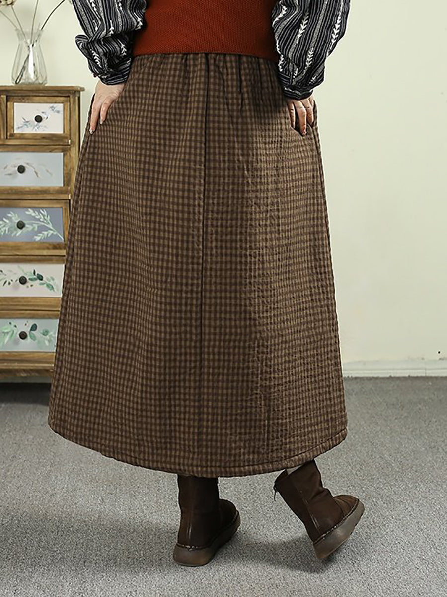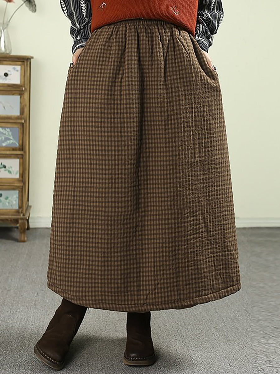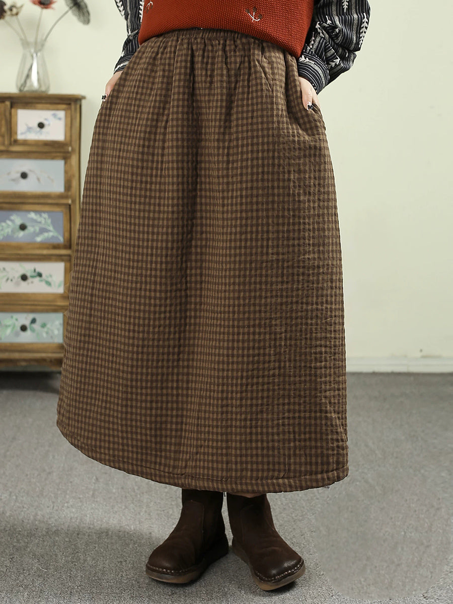 Women Winter Vintage Lattice 100%Cotton Padded Skirt