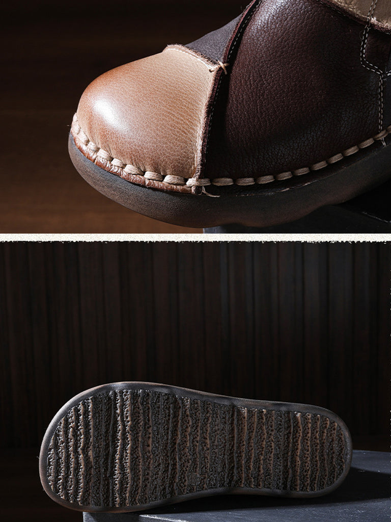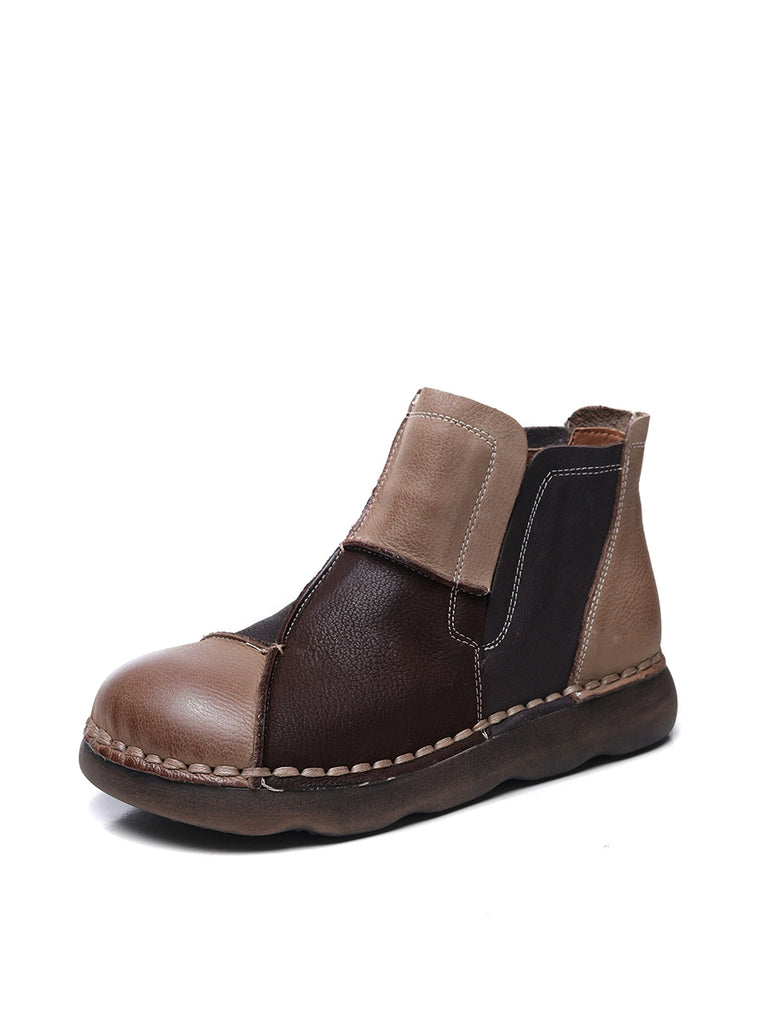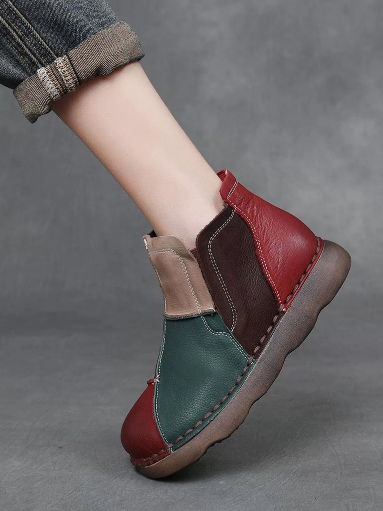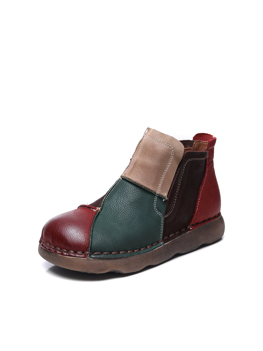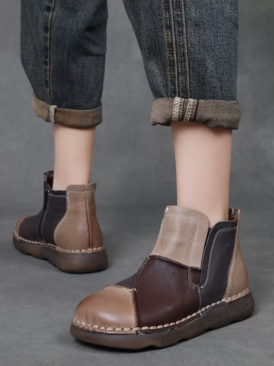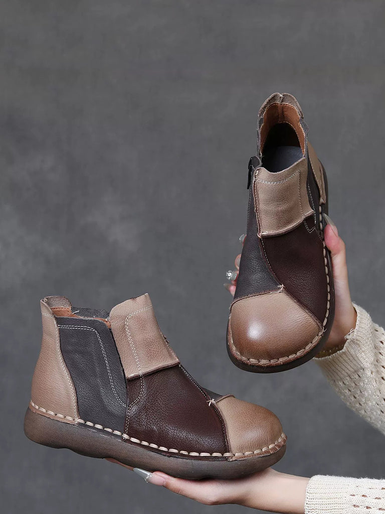 Women Winter Vintage Leather Colorblock Ankle Boots
