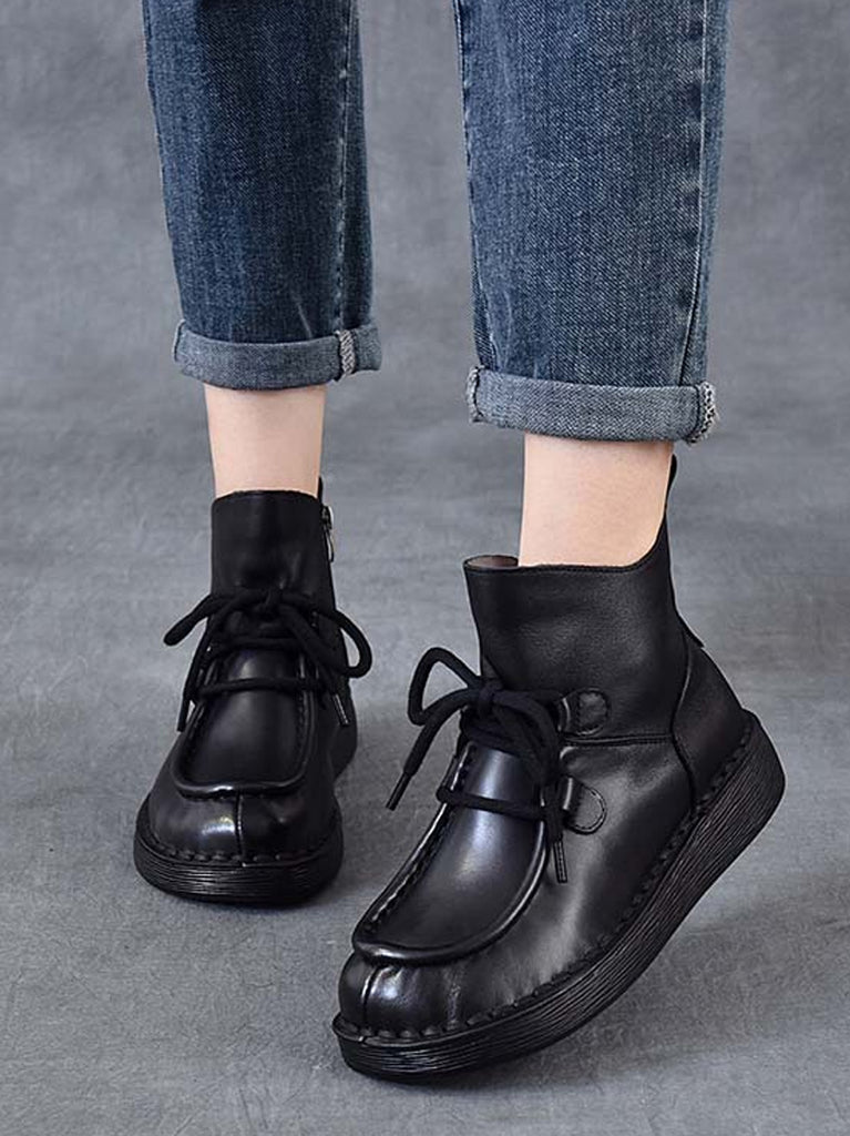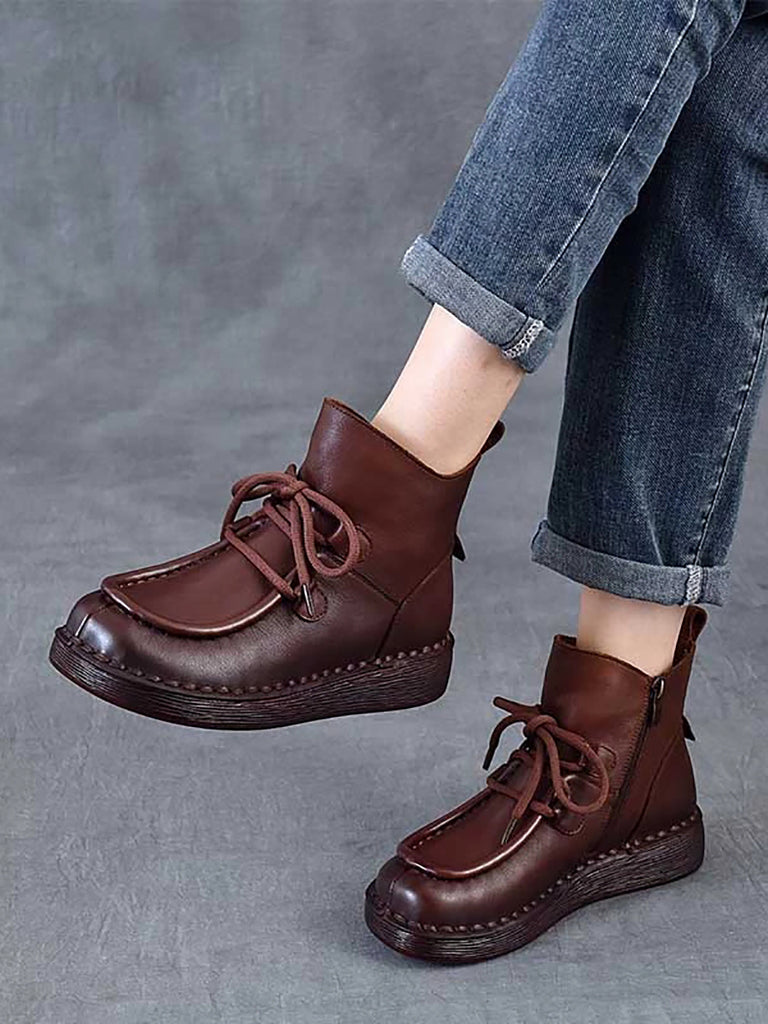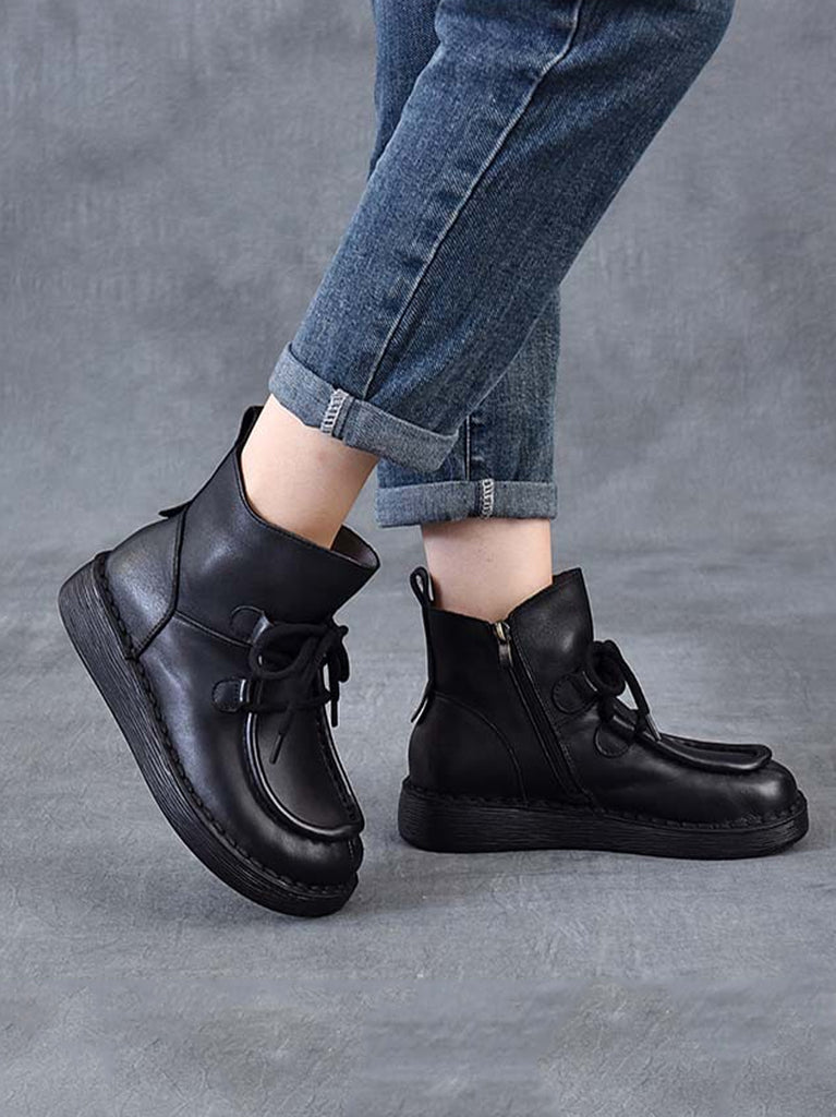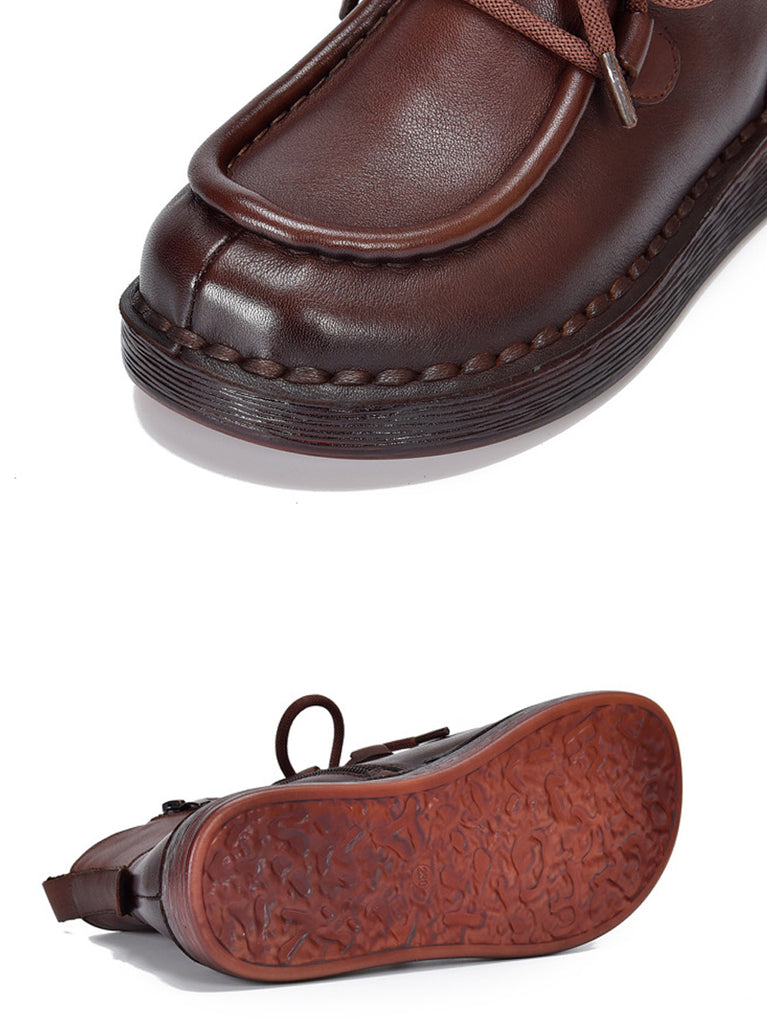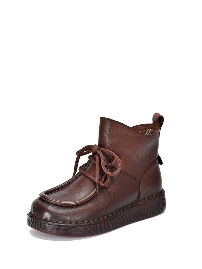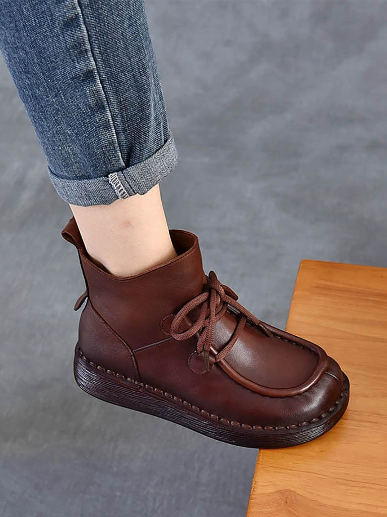 Women Winter Vintage Leather Flat Ankle Boots