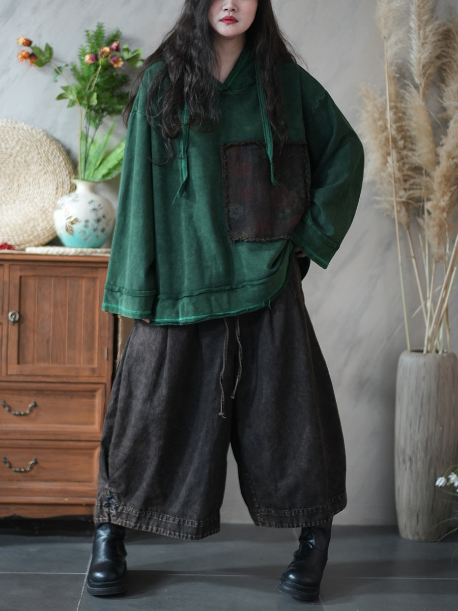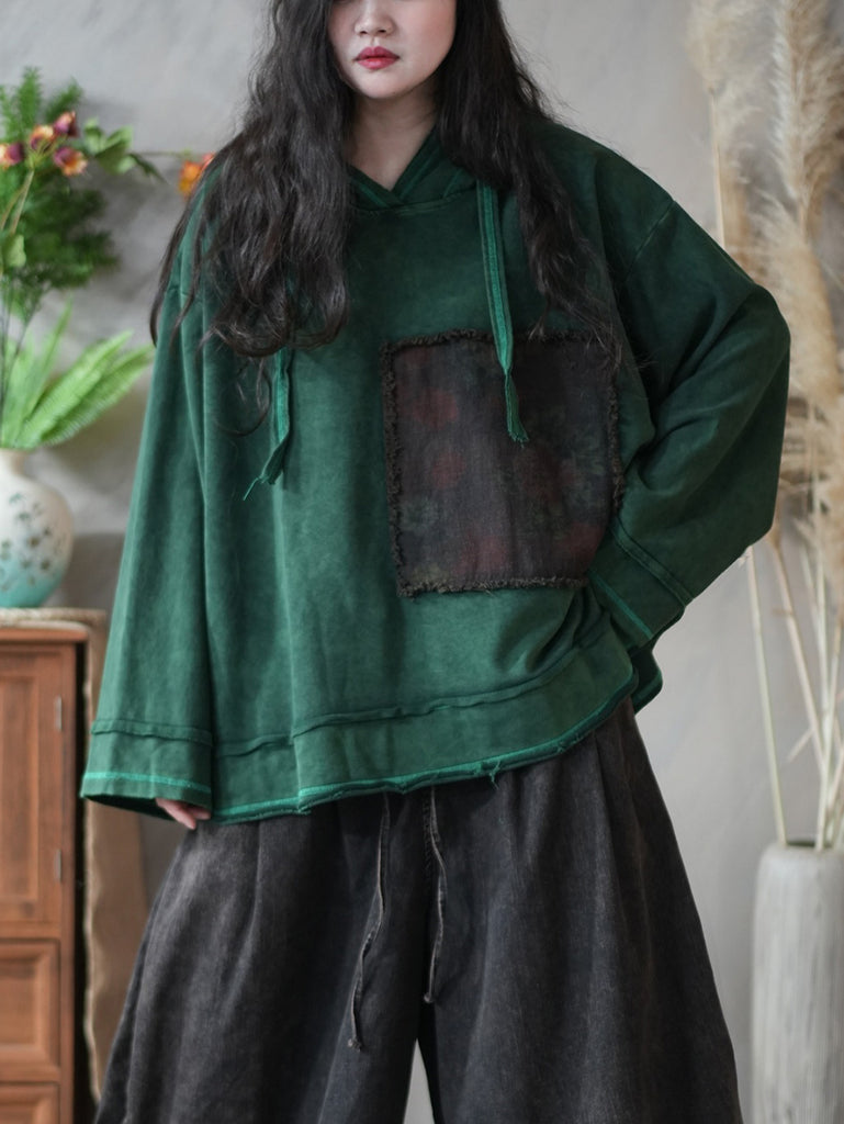 Women Winter Vintage Patchwork 100%Cotton Hoodie