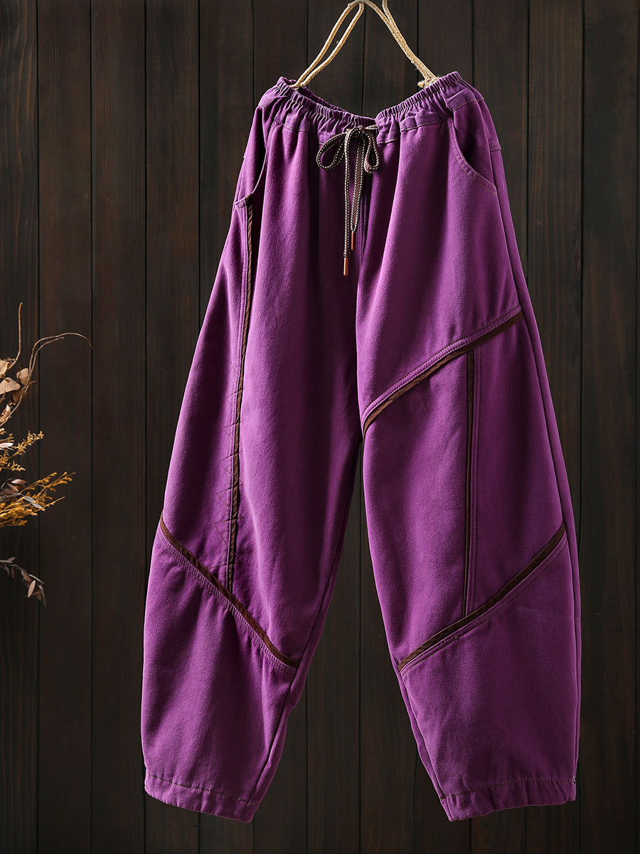 Women Winter Vintage Spliced Cotton Fleece-lined Harem Pants