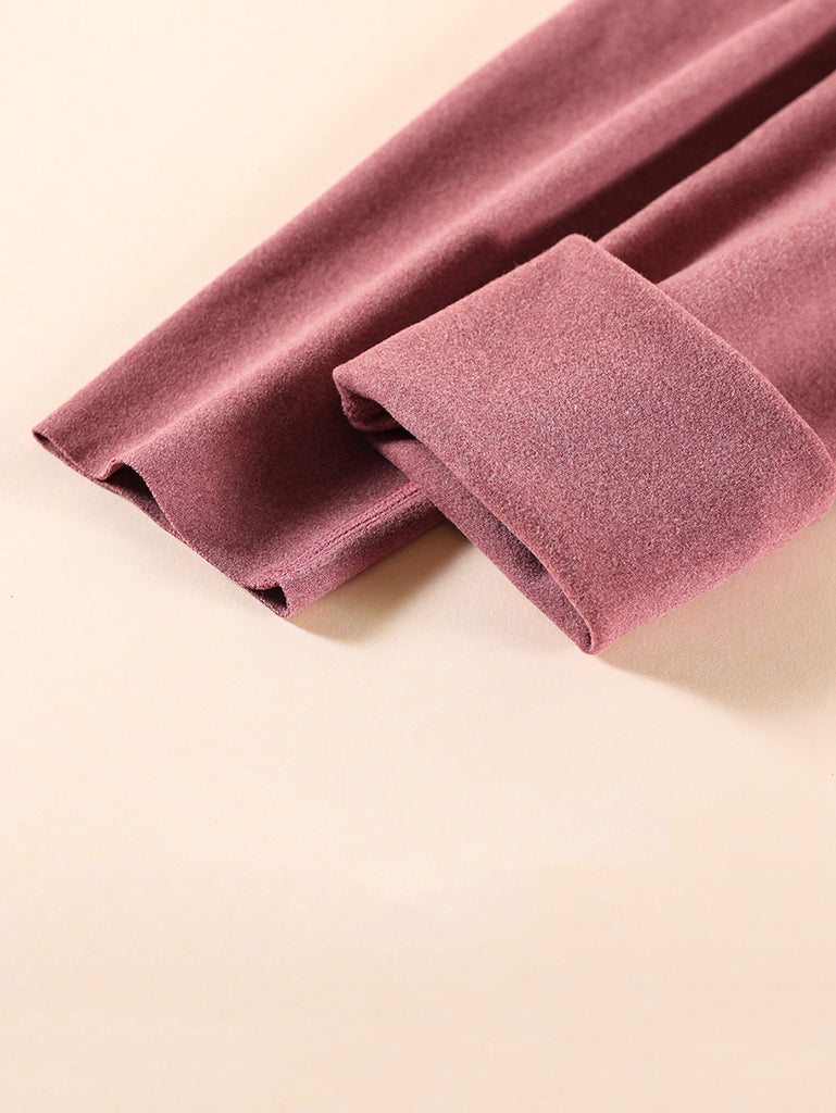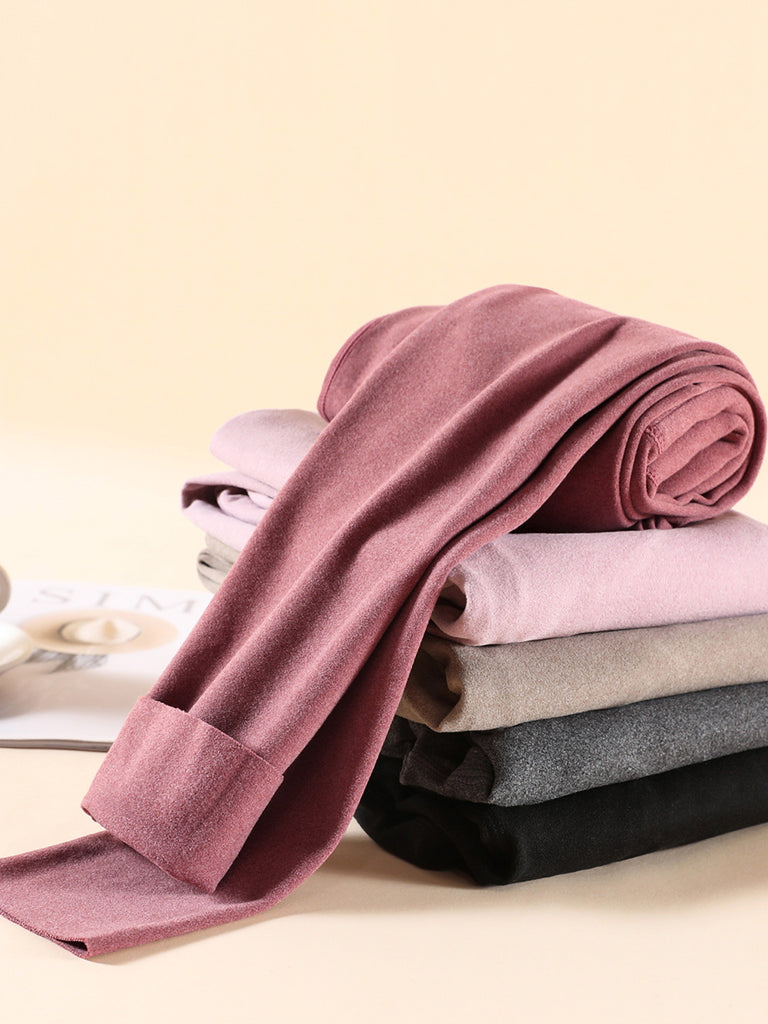 Women Winter Warm Pure Color Mid-Waist Leggings